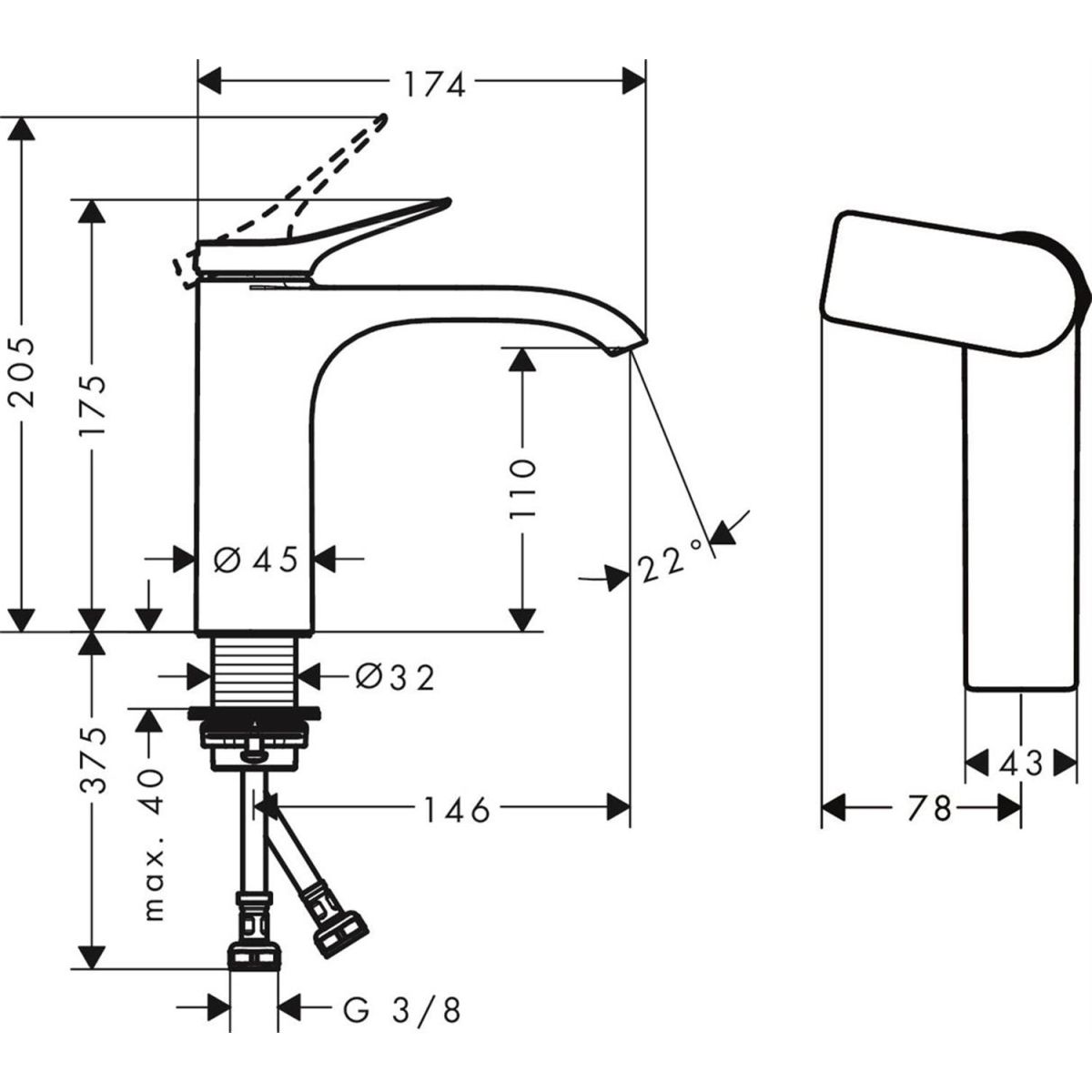 • Anschlussart: G ⅜-Anschlüsse
