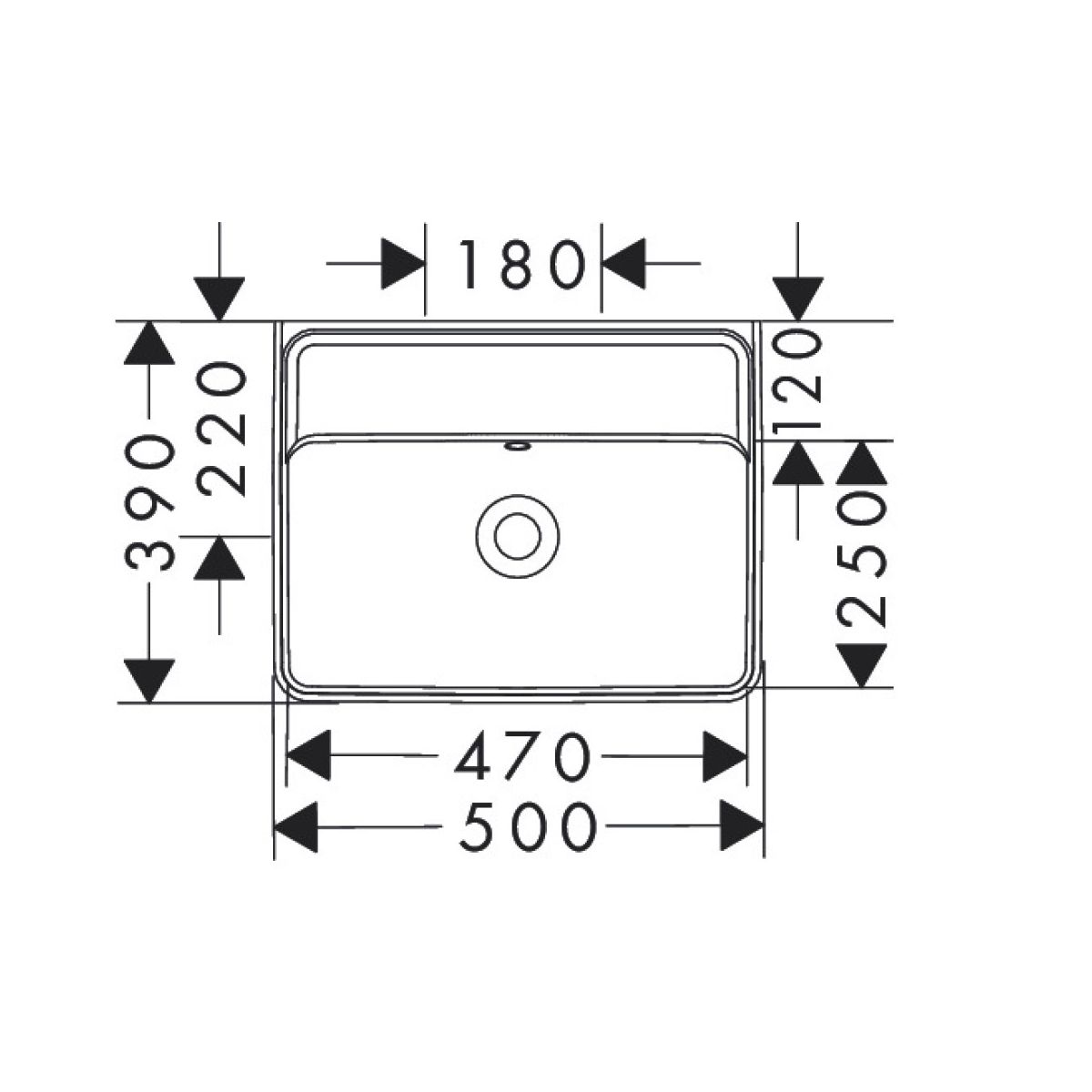 - Innenhöhe der Waschbeckenschale: 105 mm
