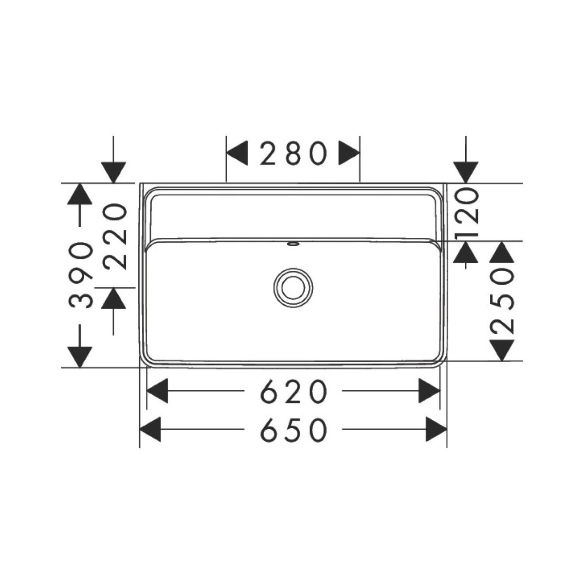 - Innenhöhe der Waschbeckenkammer: 120 mm
