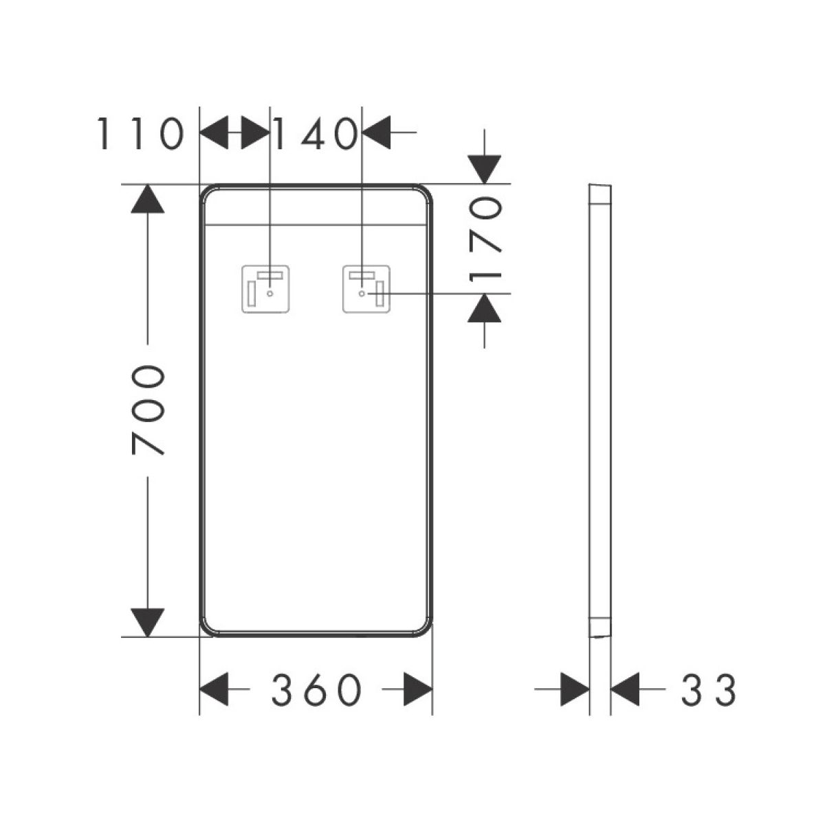 Hansgrohe Xarita Lite Q Spiegel 36x70 cm rechteckig mit Beleuchtung weiß 54968700