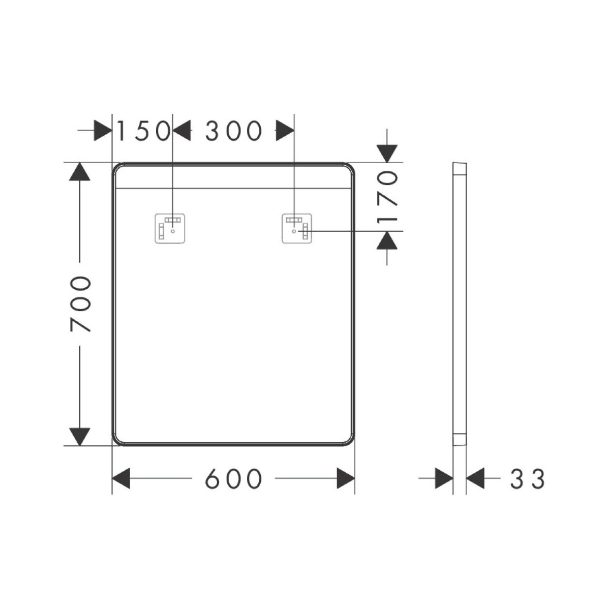 Hansgrohe Xarita Lite Q Spiegel 60x70 cm rechteckig mit Beleuchtung schwarz 54957670