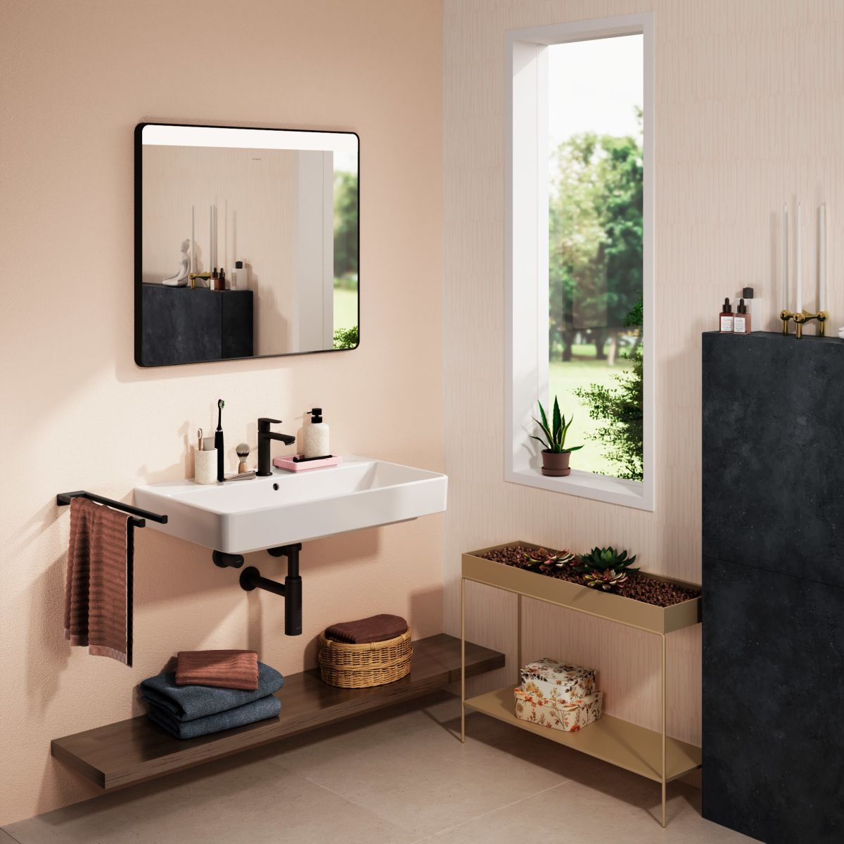 Hansgrohe Xarita Lite Q Spiegel 80x70 cm rechteckig mit Beleuchtung mit Spiegelheizung schwarz 54971670