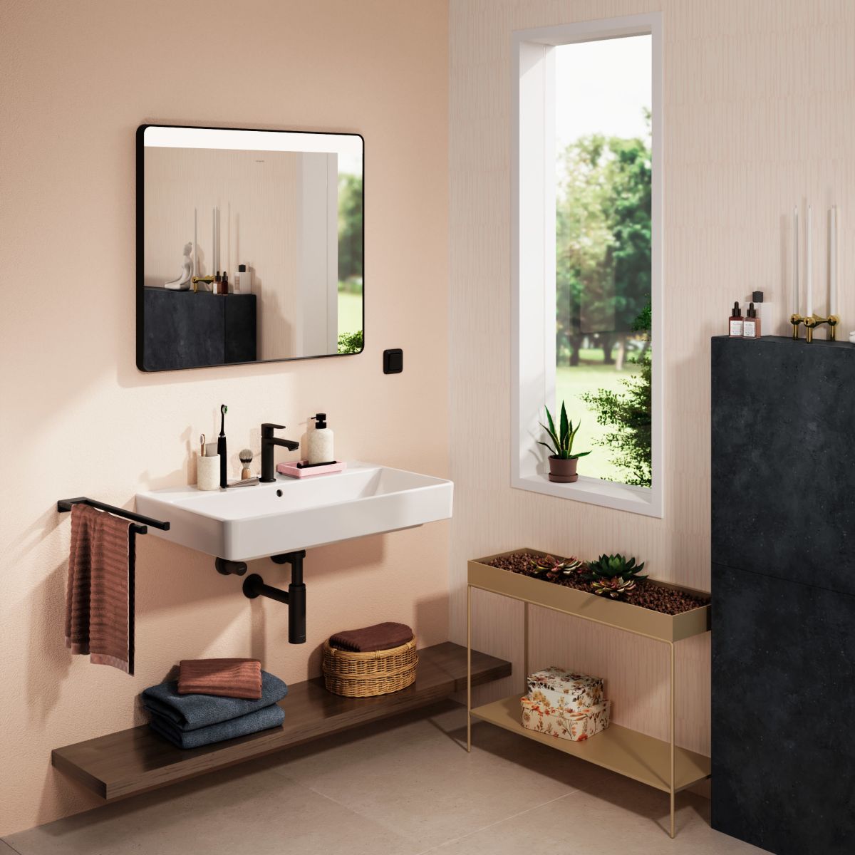 Hansgrohe Xarita Lite Q Spiegel 80x70 cm rechteckig mit Beleuchtung schwarz 54958670