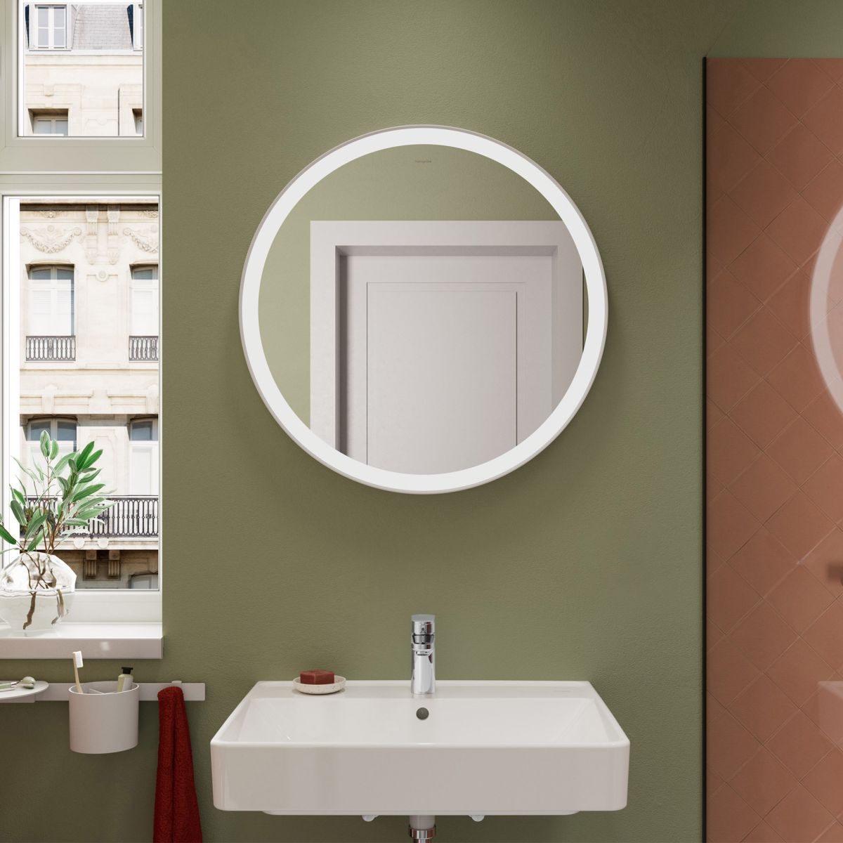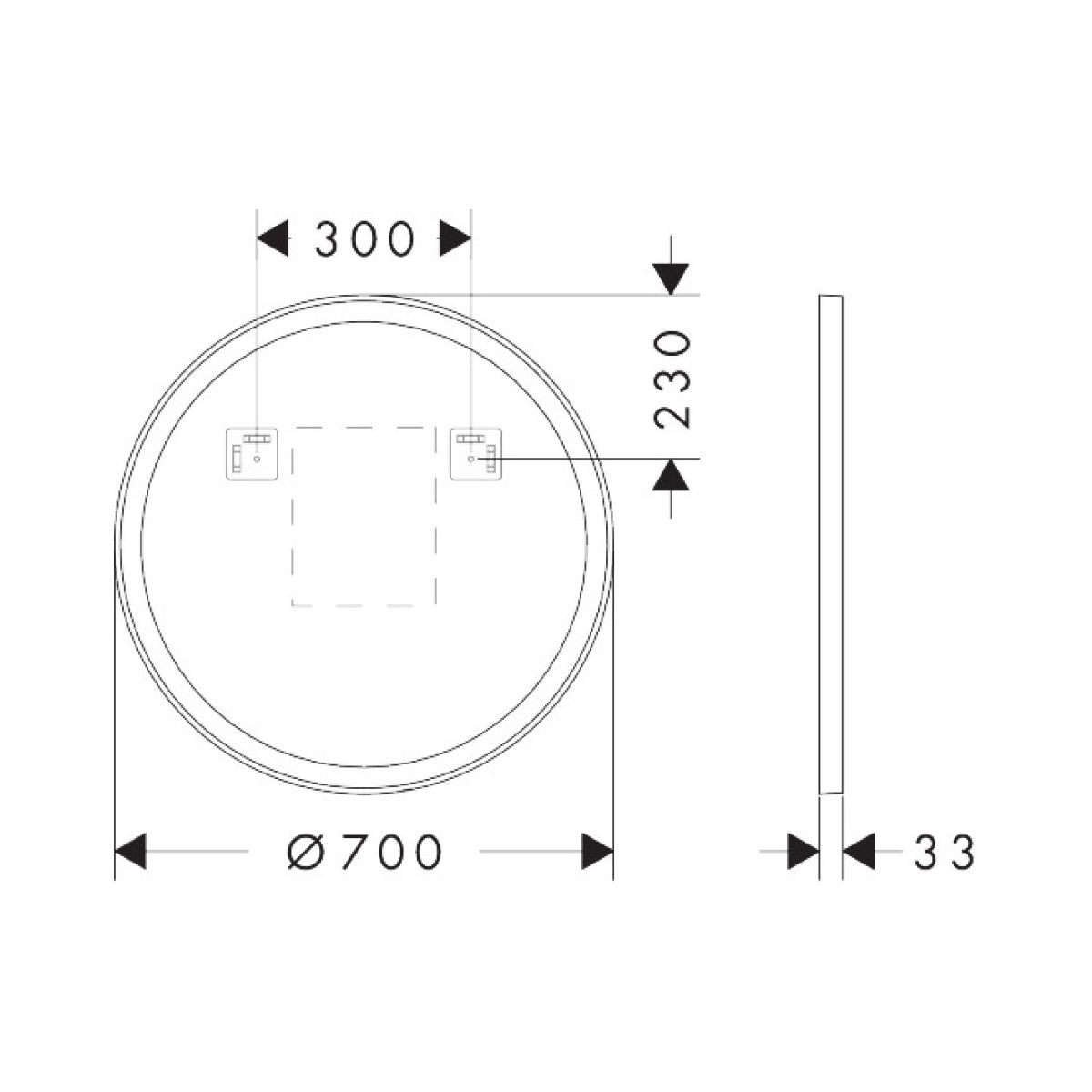 Hansgrohe Xarita Lite S Spiegel 70x70 cm rund mit Beleuchtung mit Spiegelheizung weiß 54979700
