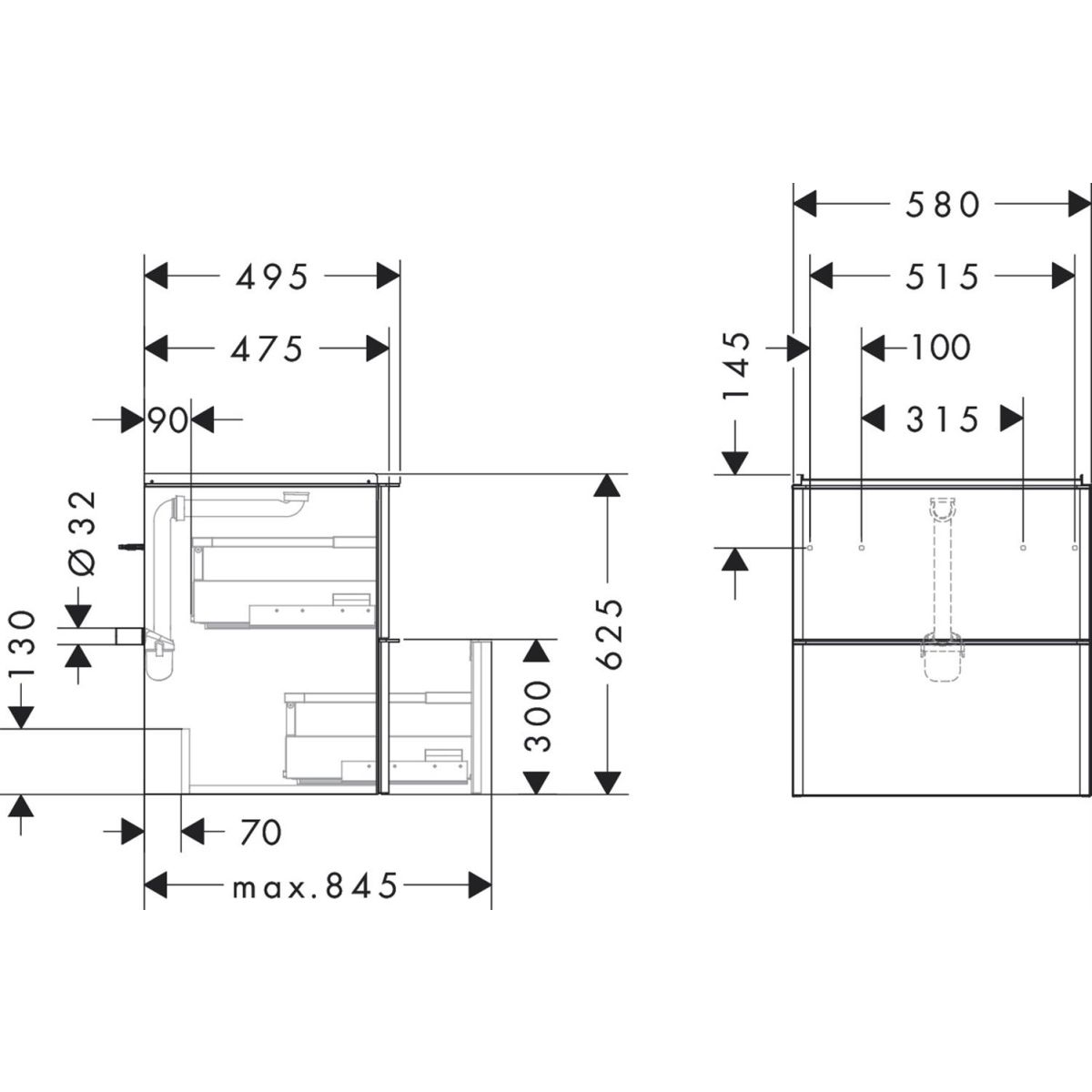 - Im Lieferumfang enthalten: Waschbeckenunterschrank, Set mit Grundbehältern, platzsparender Siphon (mit 50 mm Wasserverschluss)