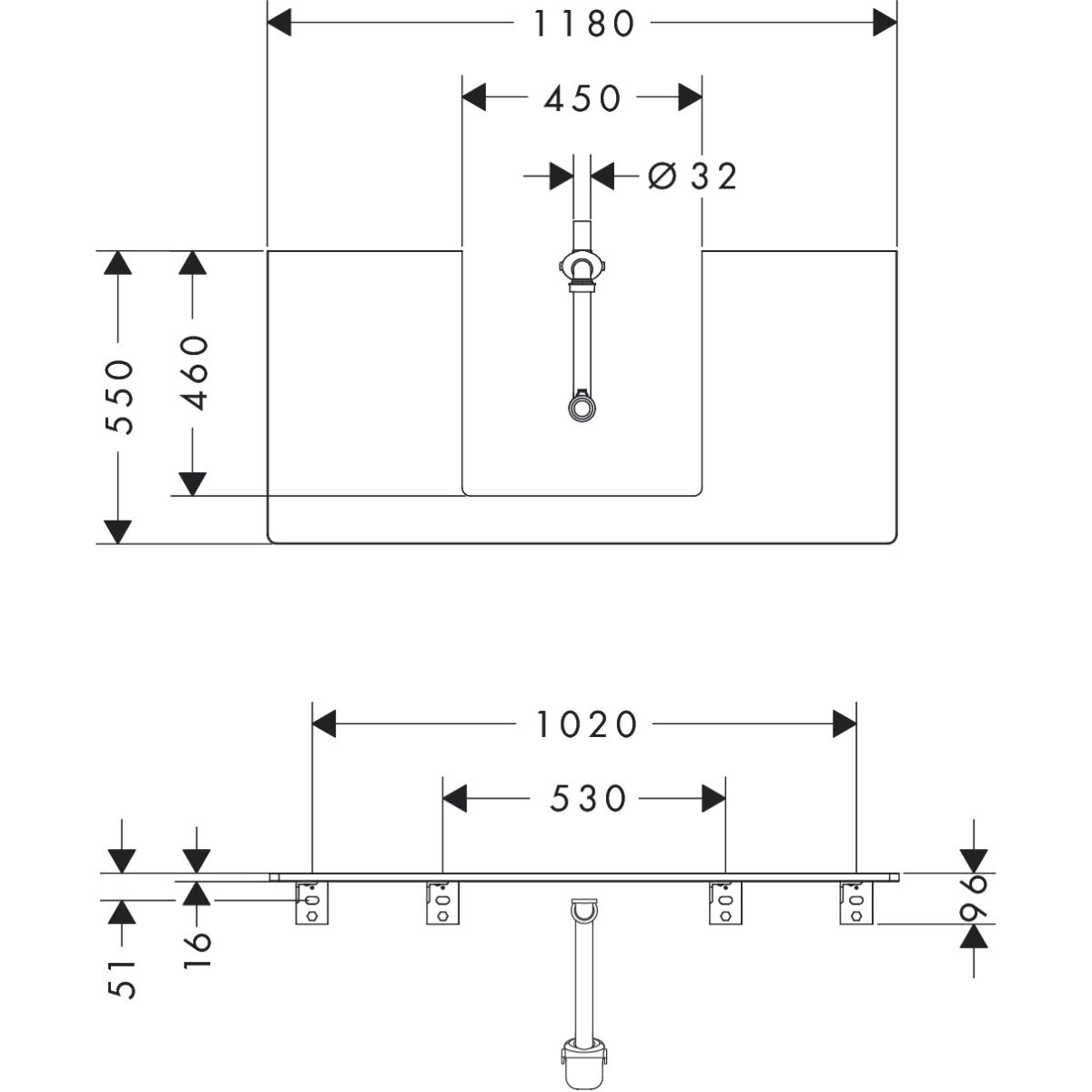 Hansgrohe Xelu Q Naphtha-Arbeitsplatte 118x55 cm eiche 54096230