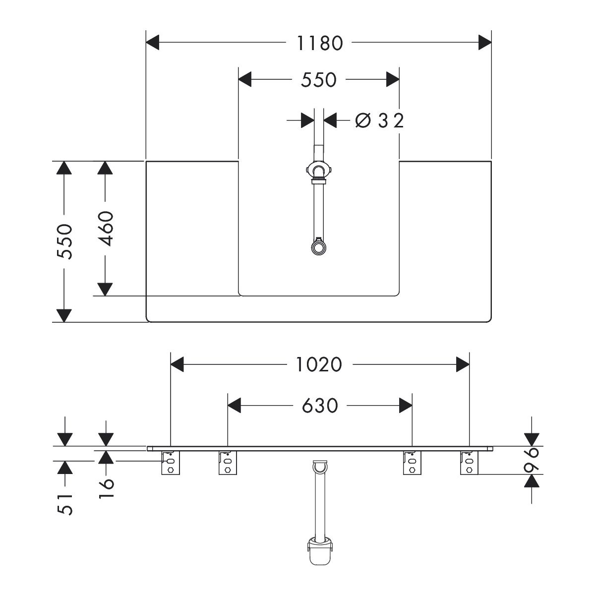 - Ausschnitt für Waschbecken: in der Mitte