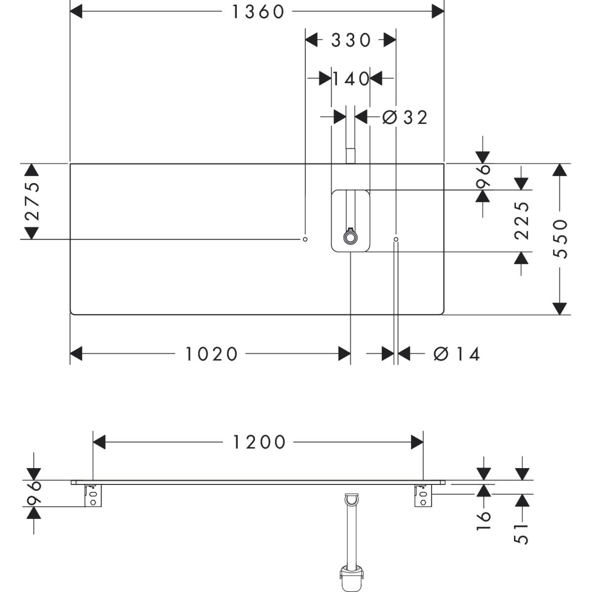 Hansgrohe Xelu Q Naphtha-Arbeitsplatte 136x55 cm nussig 54124630