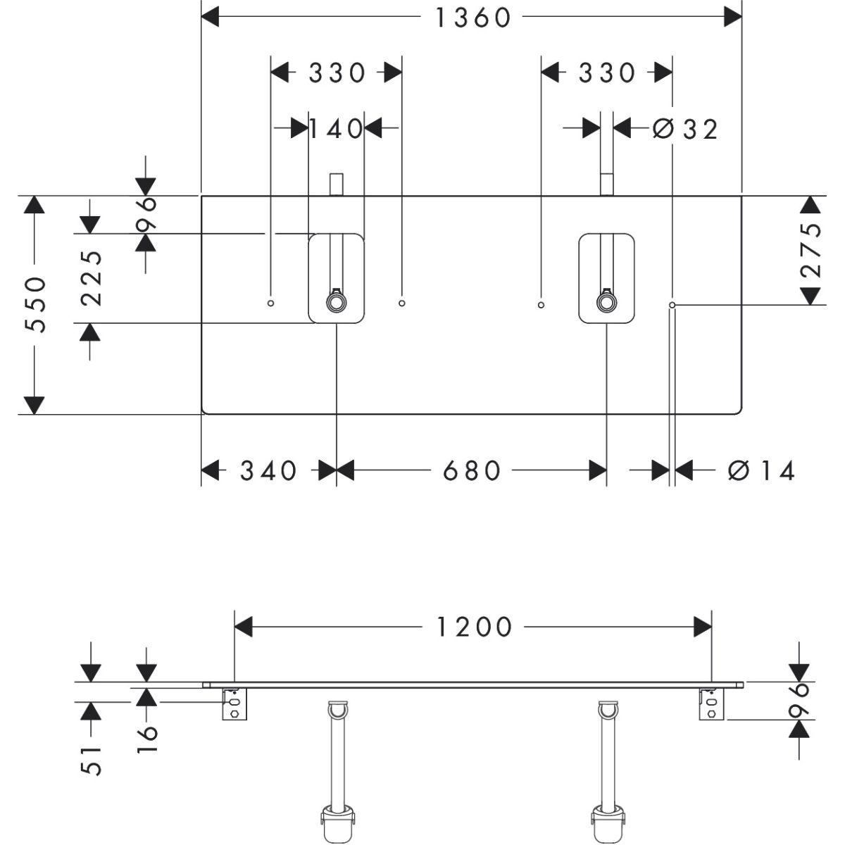 Hansgrohe Xelu Q Naphtha-Arbeitsplatte 136x55 cm nussig 54125630