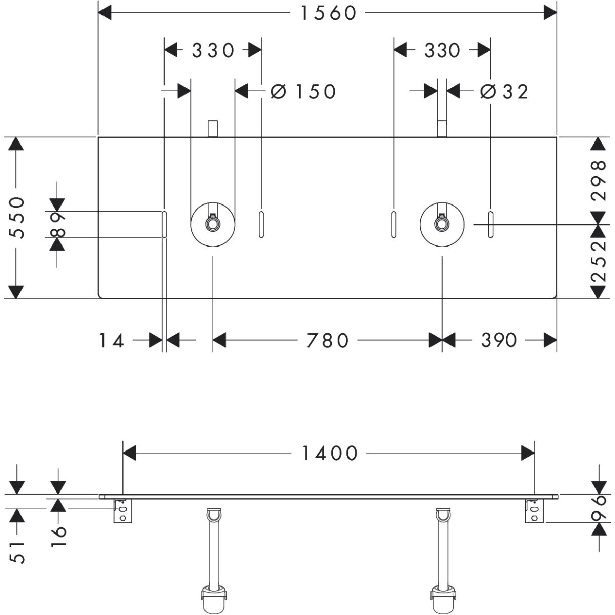 Hansgrohe Xelu Q Naphtha-Arbeitsplatte 156x55 cm nussig 54119630