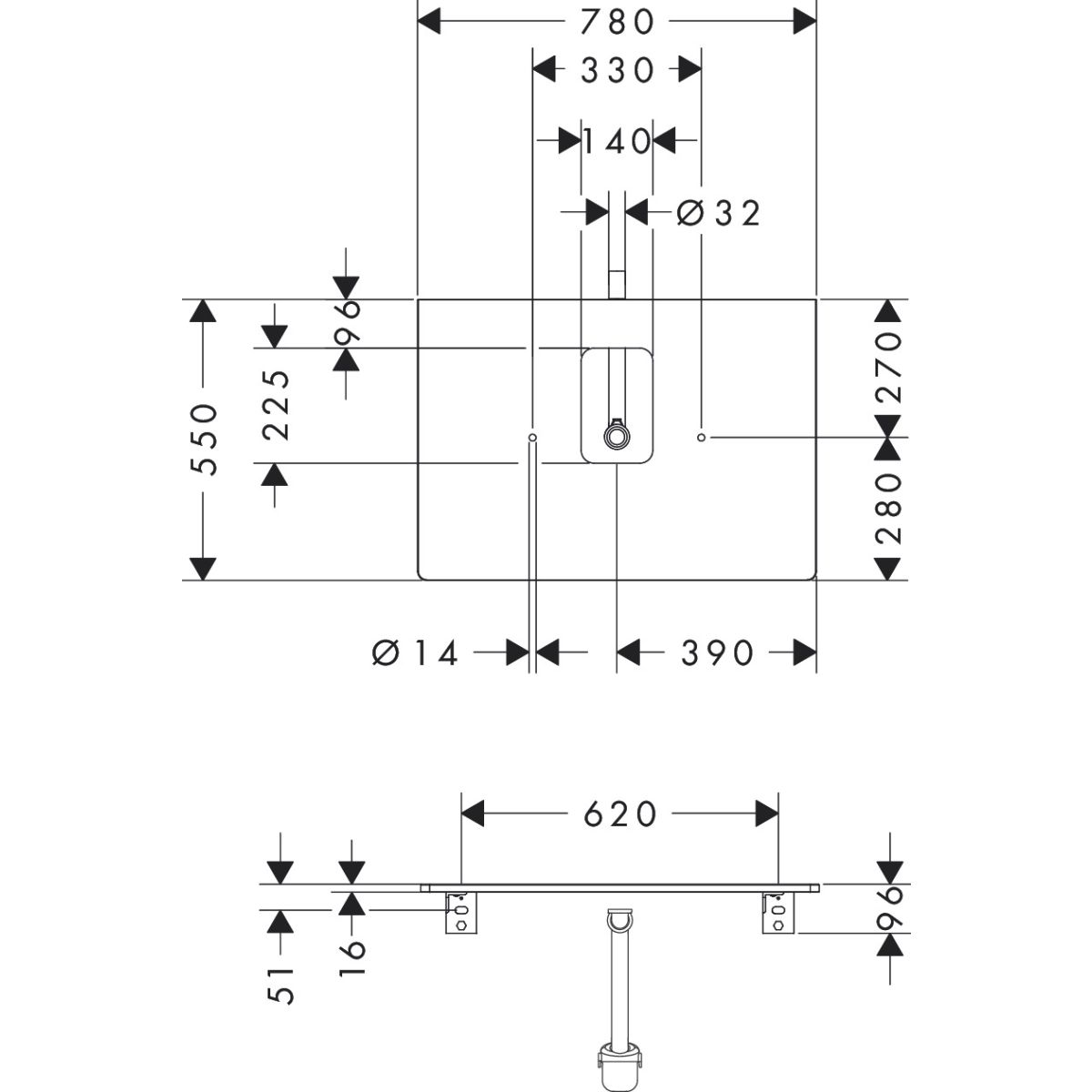 Große Stauräume rechts und links vom Waschbecken fallen sofort ins Auge. Es handelt sich um einen geräumigen Platz, an dem wichtige Badaccessoires und Kosmetika untergebracht werden können. Die Arbeitsplatte selbst besteht aus einer verdichteten, dreischichtigen Spanplatte, die aus nachhaltiger Forstwirtschaft stammt. Wie alle anderen Materialien der hansgrohe Badmöbel ist auch dieses perfekt für die feuchten Bedingungen im Badezimmer geeignet.