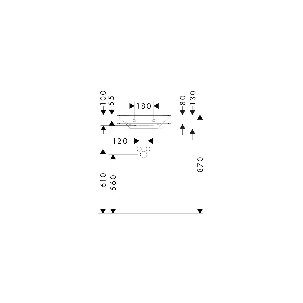 - Innenhöhe der Waschbeckenkammer: 100 mm