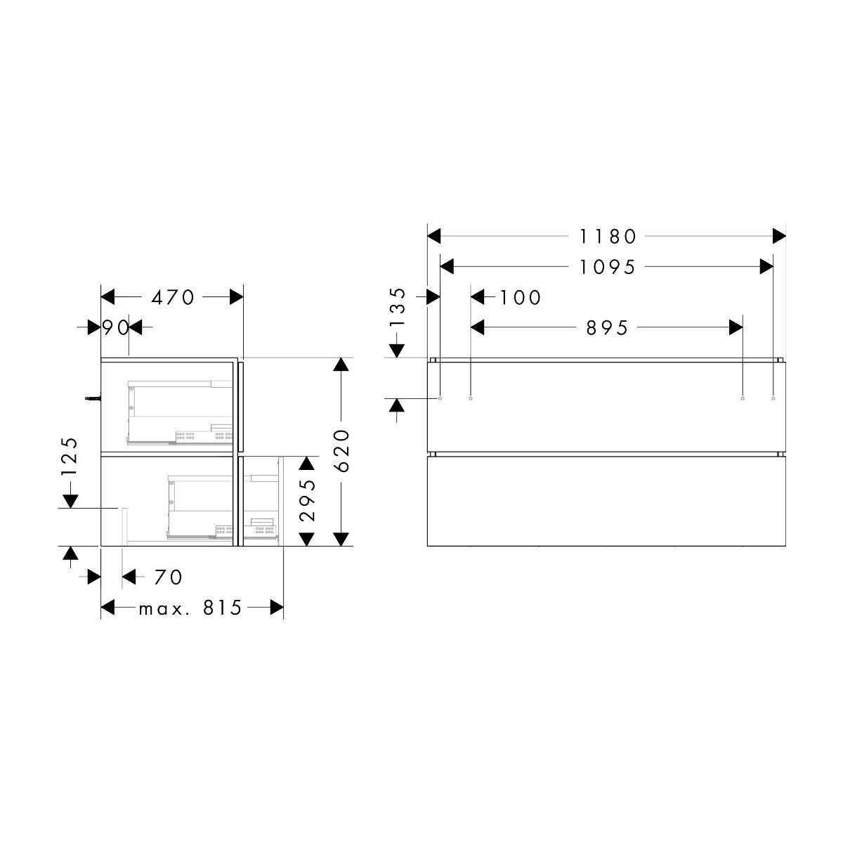 Xilesa E von hansgrohe verbindet Design und Funktionalität für ein komfortables und beeindruckendes Erlebnis. Die Schublade lässt sich dank der eleganten Schattenfuge leicht öffnen. Sie benötigen keine Schraubgriffe. Der Waschtischunterschrank bietet maximalen Stauraum – dank des platzsparenden Siphon (separat erhältlich: #54235000) ist kein Siphonausschnitt erforderlich!