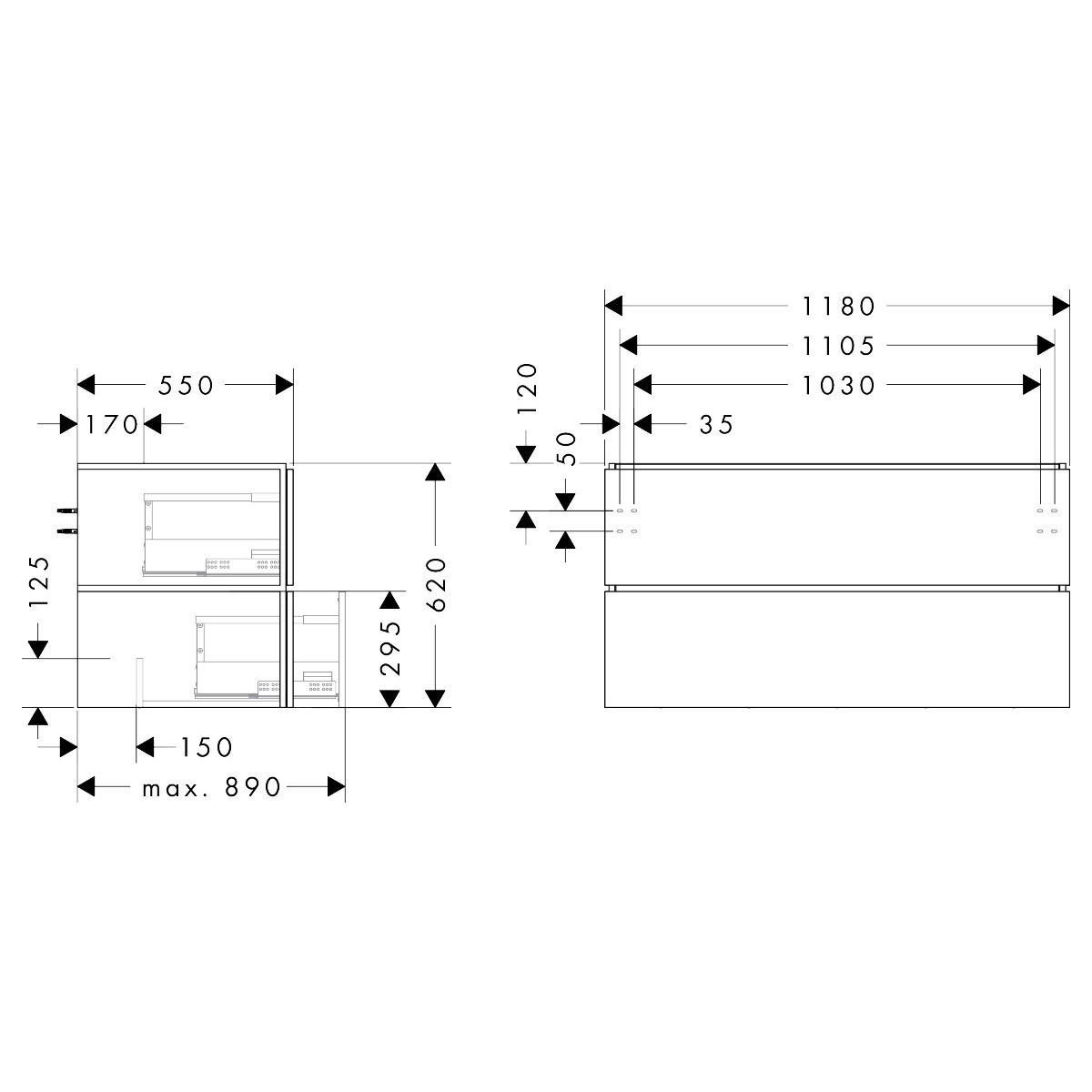 Hansgrohe Xilesa E Kabinett 118x55x62 cm Unterschrank hängend grau 54303760