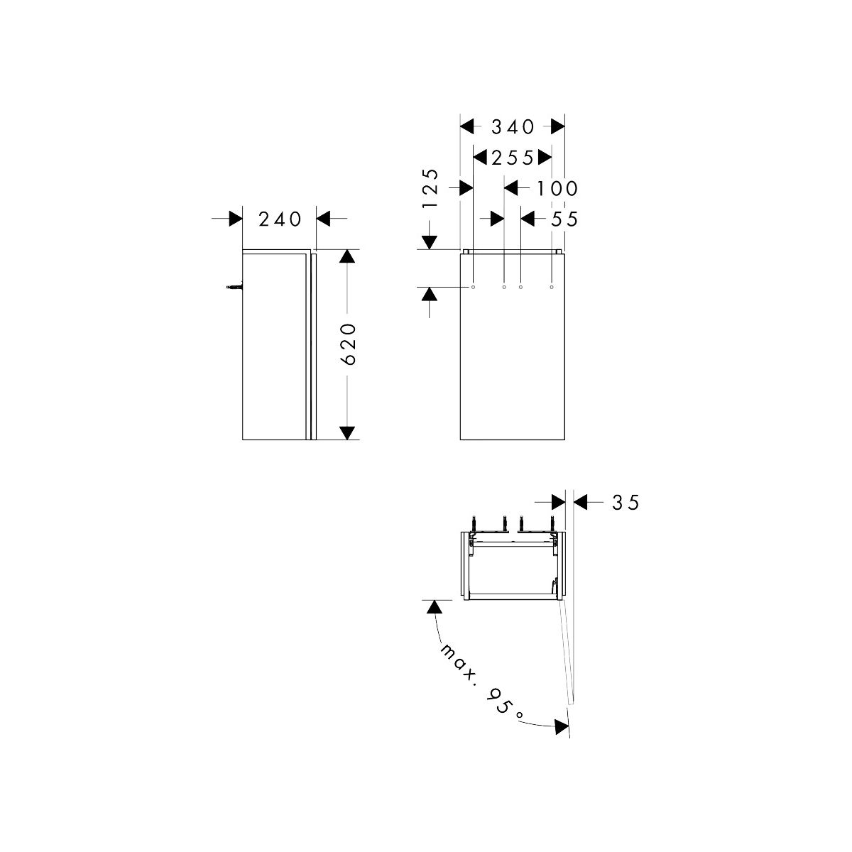 - Platzsparender Siphon (Nr. 54235000) erforderlich und separat zu bestellen