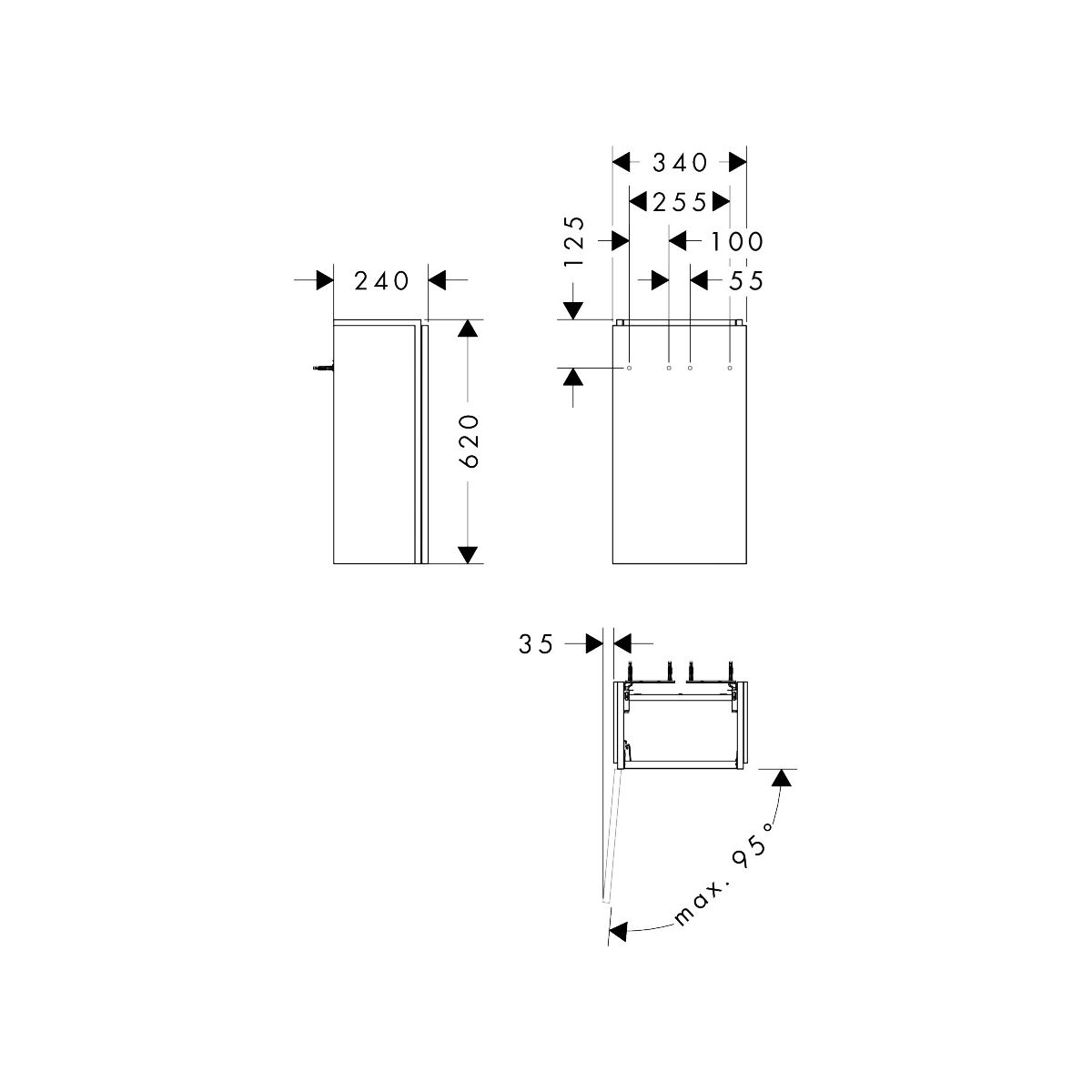 - Platzsparender Siphon (Nr. 54235000) erforderlich und separat zu bestellen