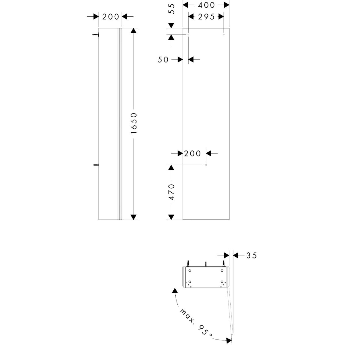 Hansgrohe Xilesa E Kabinett 40x20x165 cm Seitenschrank hängend grau 54286760