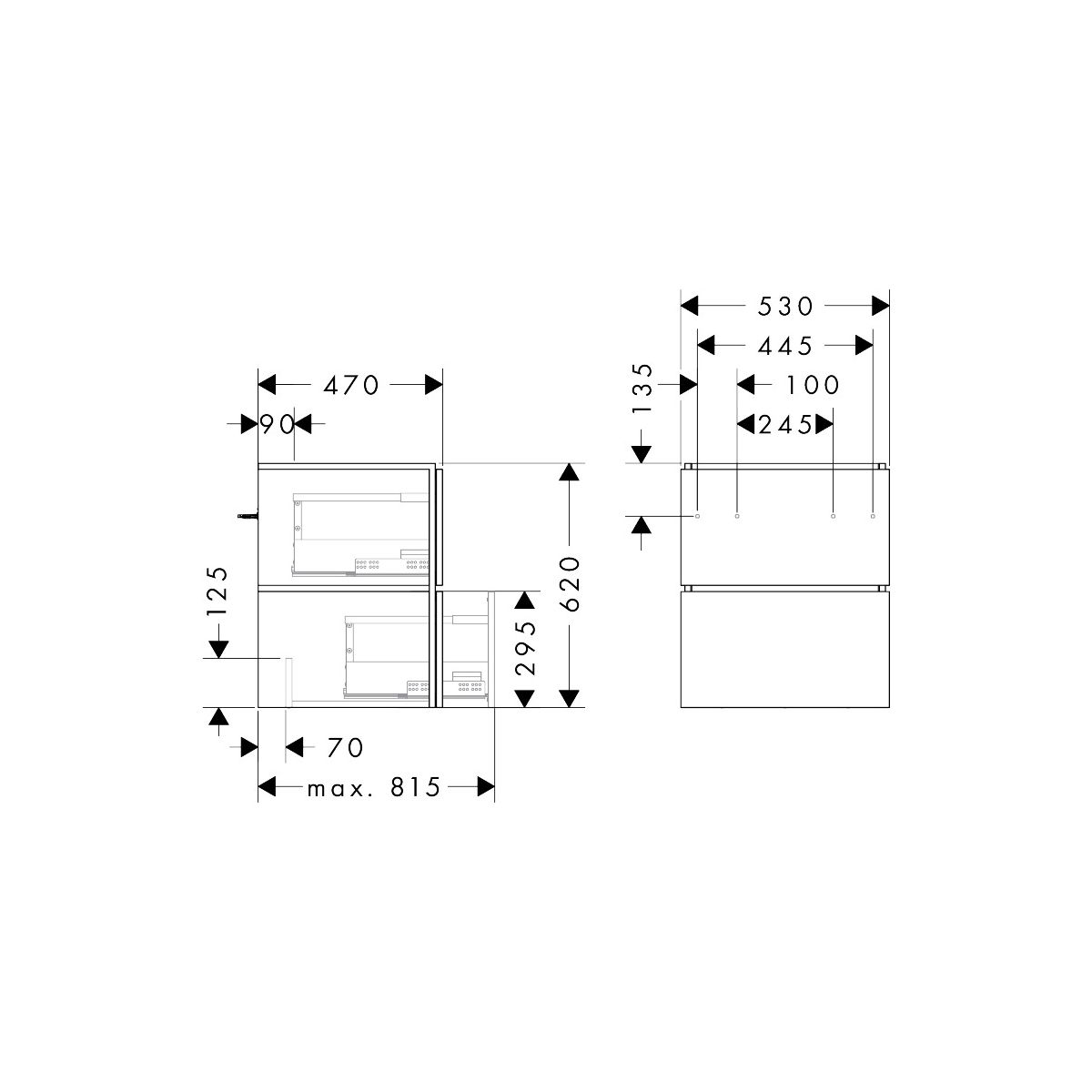 - Platzsparender Siphon (Nr. 54235000) erforderlich und separat zu bestellen