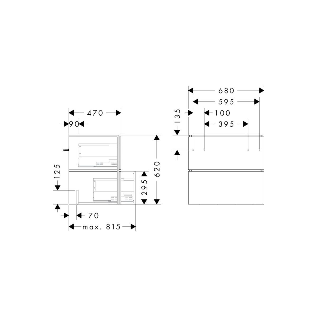 Xilesa E von hansgrohe verbindet Design und Funktionalität für ein komfortables und beeindruckendes Erlebnis. Die Schubladen lassen sich dank einer eleganten Schattenfuge leicht öffnen. Sie benötigen keine Schraubgriffe. Der Waschtischunterschrank bietet maximalen Stauraum – dank des platzsparenden Siphon (separat erhältlich: #54235000) ist kein Siphonausschnitt erforderlich!