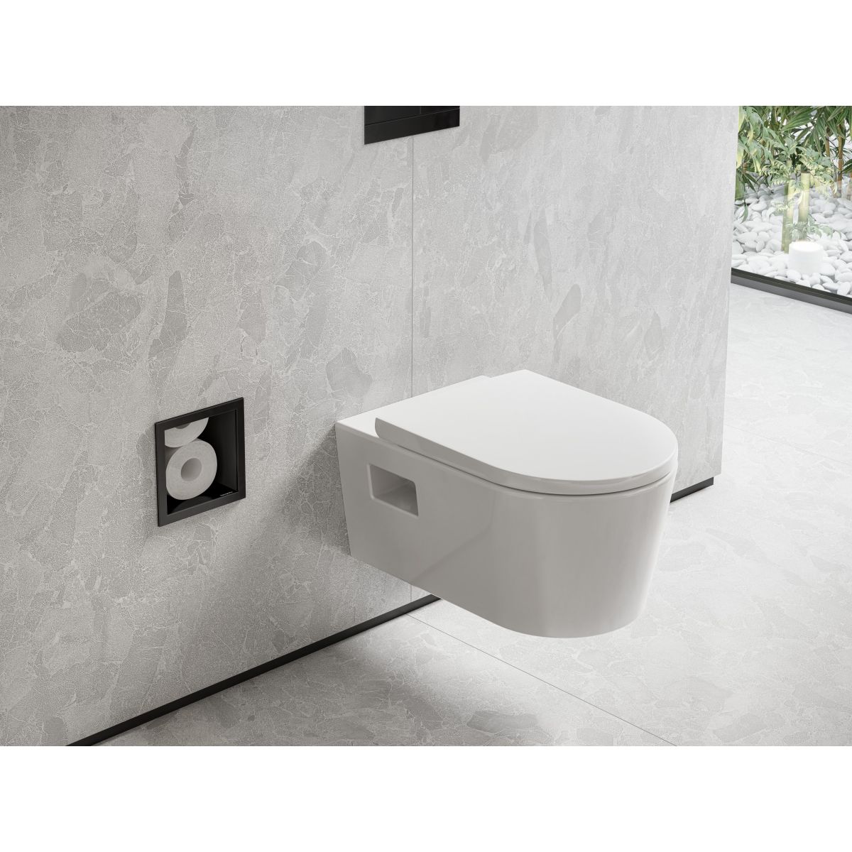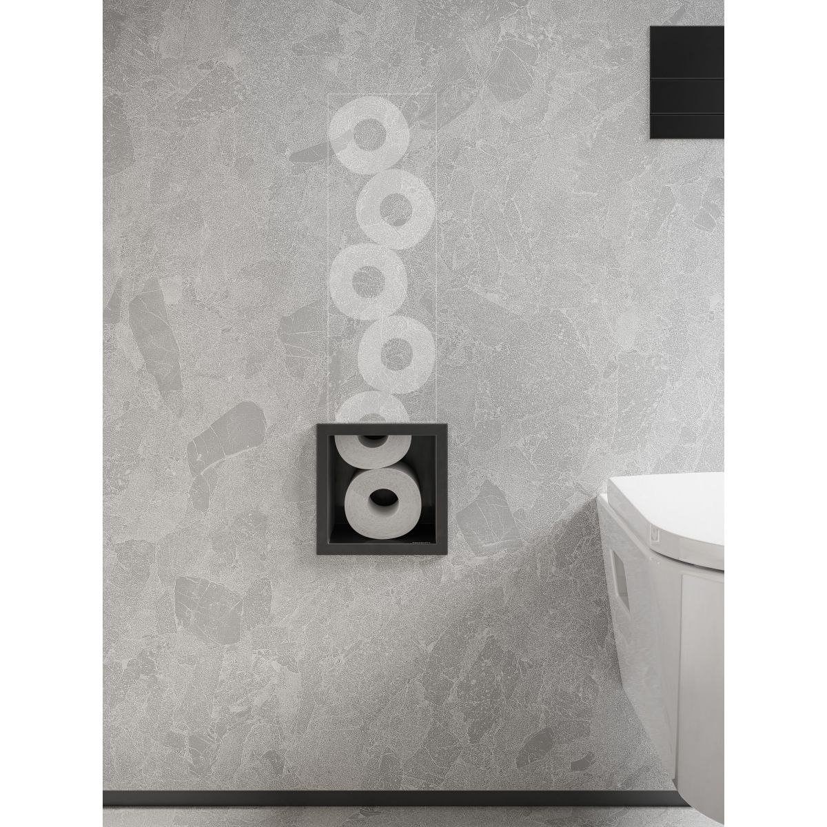 - bestehend aus: Wandnische mit Rahmen, Toilettenpapierhalter
