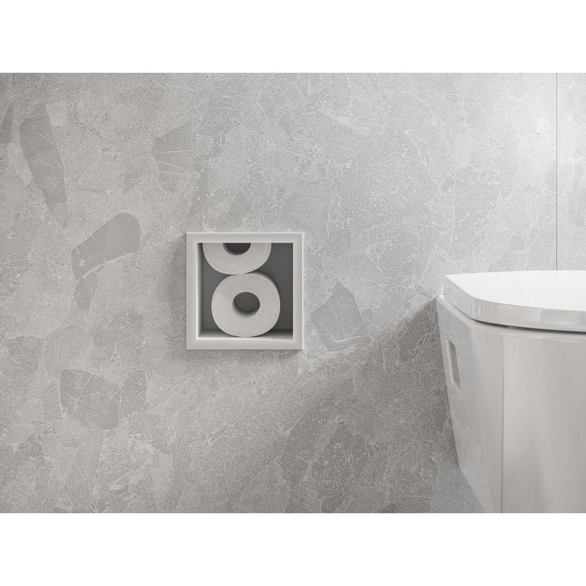- bestehend aus: Wandnische mit Rahmen, Toilettenpapierhalter