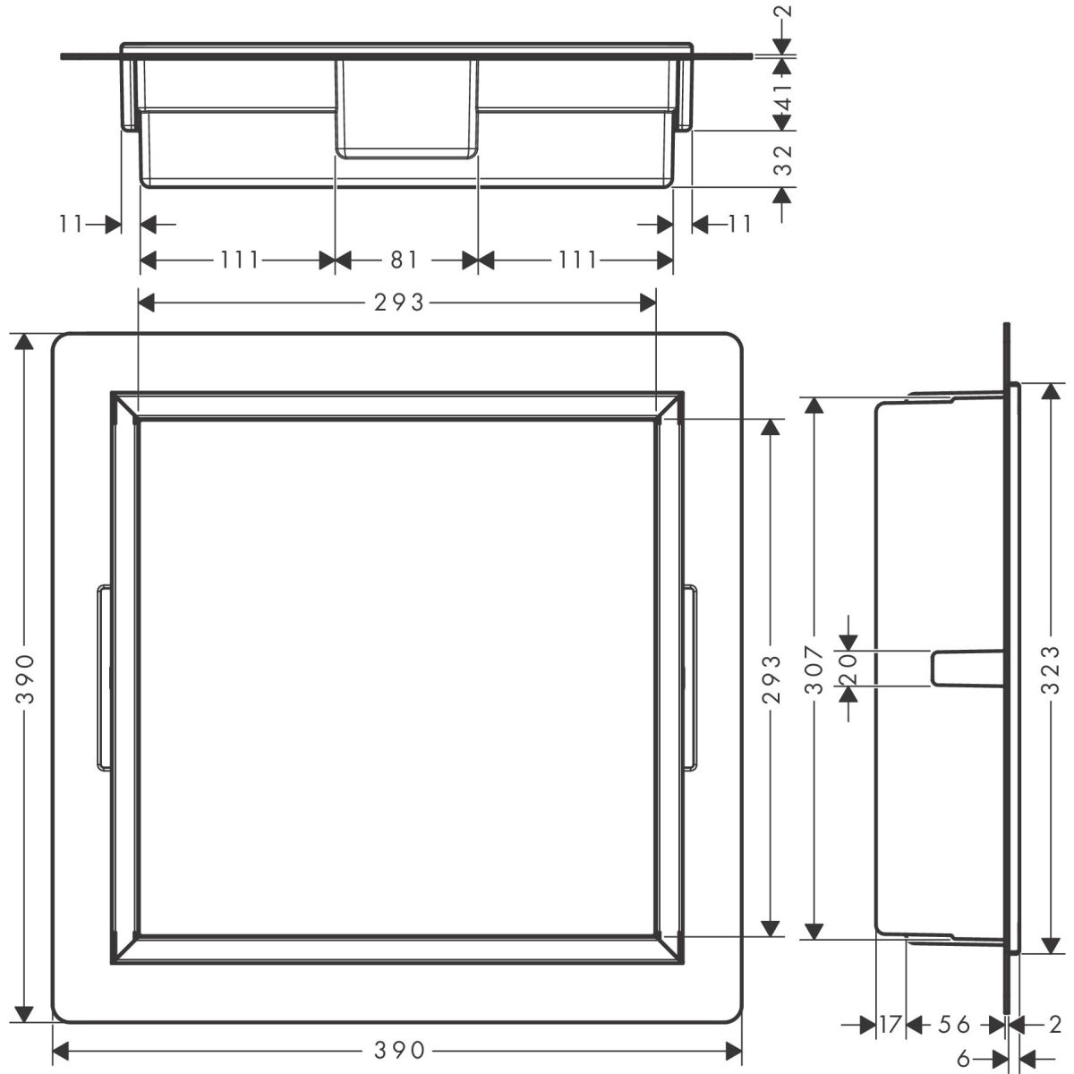 - Abmessungen der Wandnische: 300 x 300 x 70 mm (H x B x T)