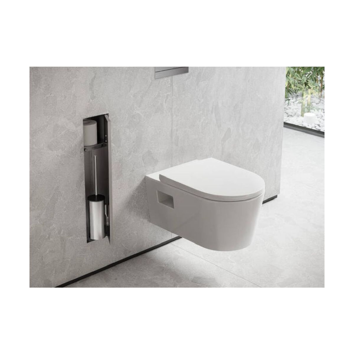 - Besteht aus: Wandnische mit Tür zum Verfliesen, WC-Bürste mit Behälter, WC-Bürste, Ablage, Installationssets, Dichtungsset