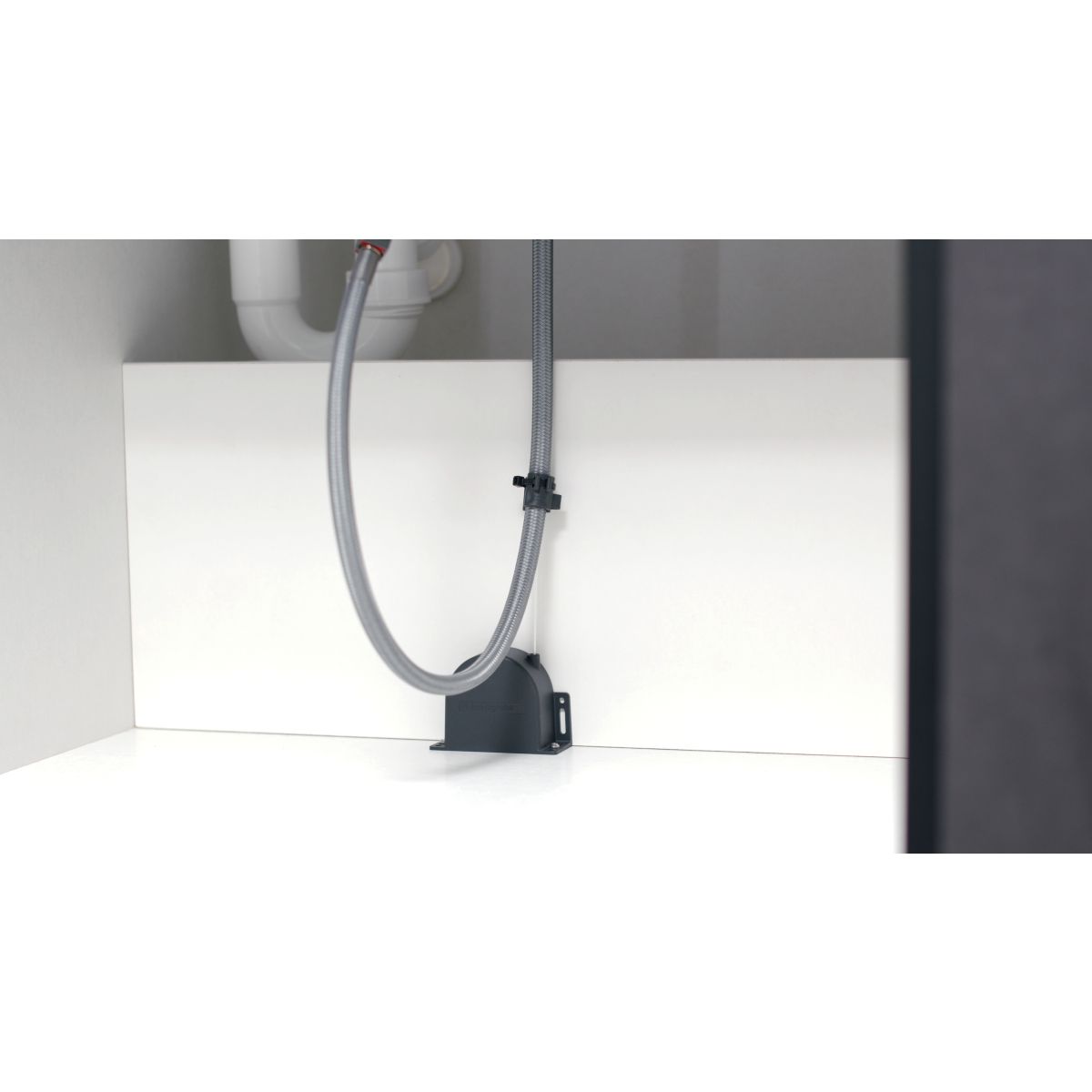 Flexible Anschlussschläuche erleichtern die Montage. Die Küchenarmatur passt in jede Standard-Armaturenbohrung (35 mm) und das sBox lite-Modul kann in einem Unterschrank unter der Arbeitsplatte untergebracht werden, um den Schlauch leise und sicher zu verlegen. Fertig!