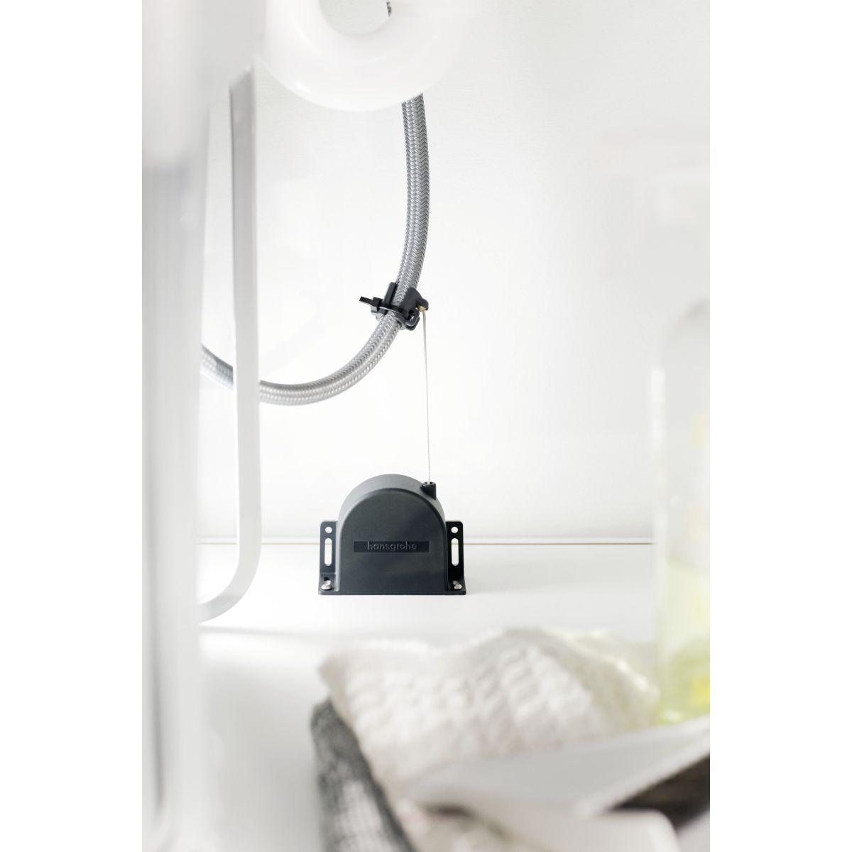 Flexible Anschlussschläuche mit Quick-Connect-Technologie von hansgrohe erleichtern die Montage. Die Küchenarmatur passt in jede Standard-Armaturenbohrung (35 mm) und das sBox lite-Modul kann in einem Unterschrank unter der Arbeitsplatte untergebracht werden, um den Schlauch leise und sicher zu verlegen. Fertig!