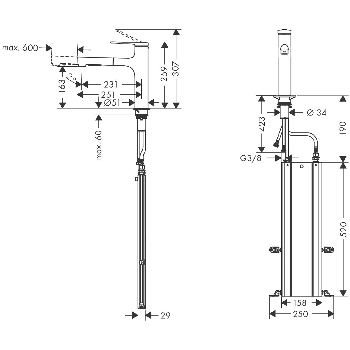 - Auszugslänge des Schlauchs: maximal bis zu 60 cm