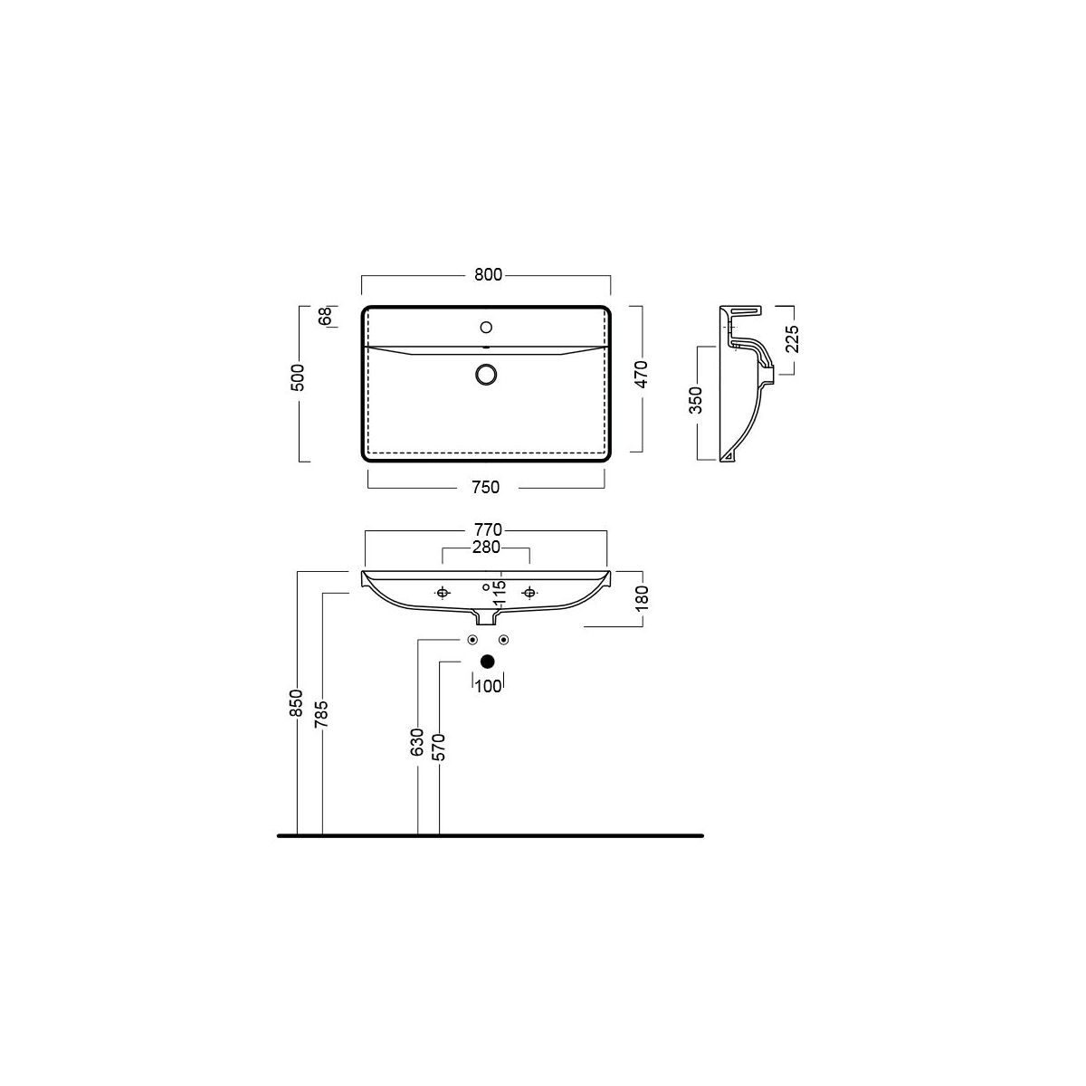 Hatria Canalgrande Waschbecken 80x50 cm rechteckig Klassisch weiß Y1EK01
