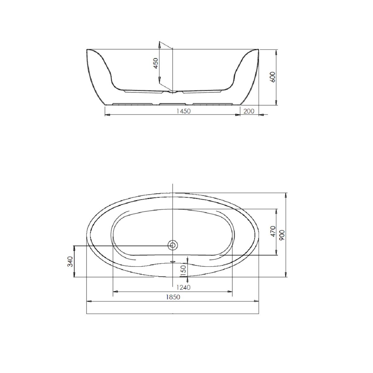 Die komplette ovale freistehende Badewanne umfasst: integriertes Überlaufsystem, Abflusssystem mit Klick-Klack-Stopfen, Verbindungsschlauch.