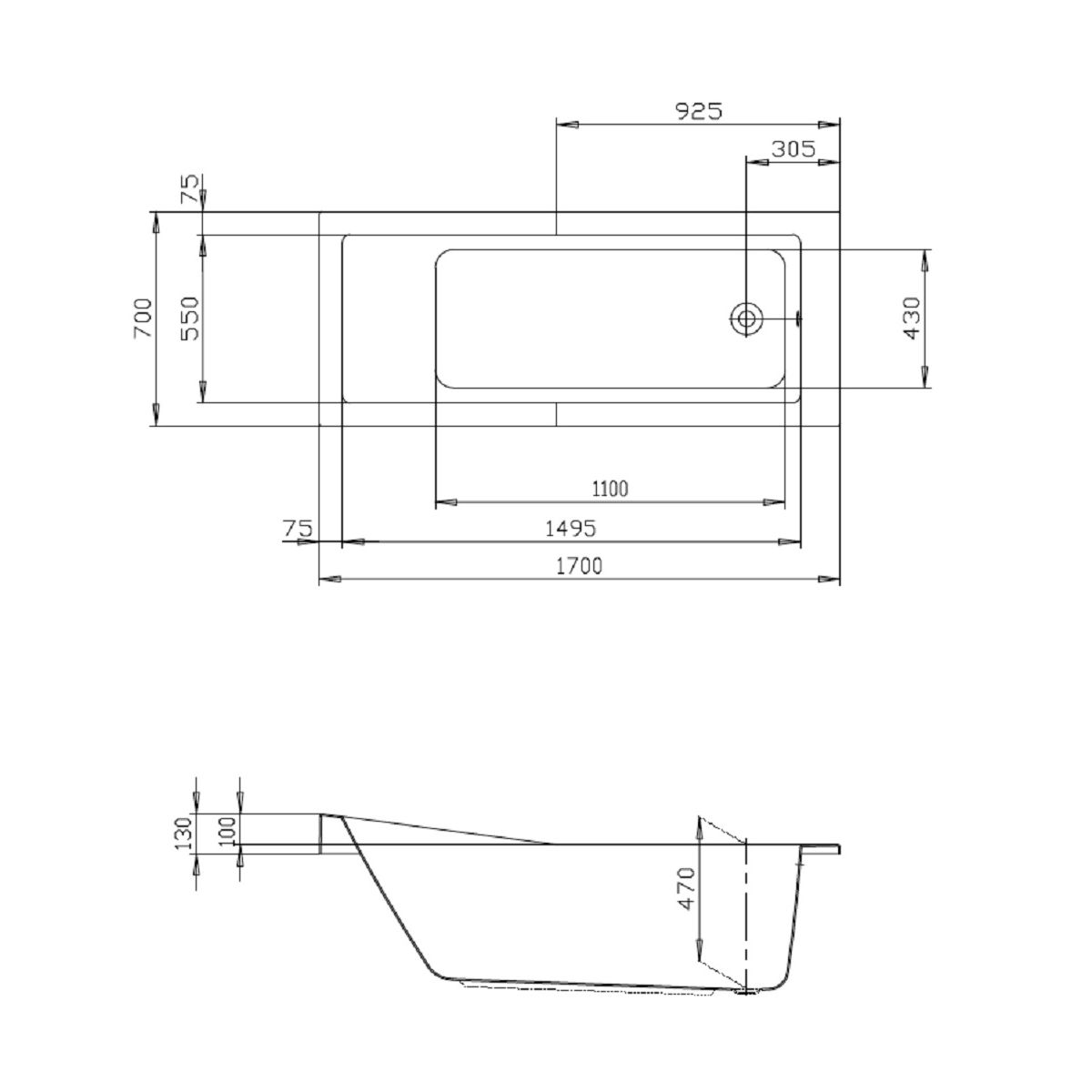 Hoesch Foster Rechteckige Badewanne 170x70 cm weiß 6646.010