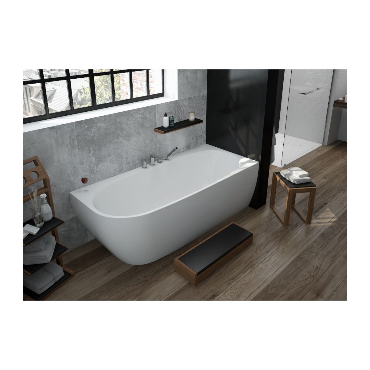 - Rechte Eckbadewanne komplett mit Überlauf und Befüllung*