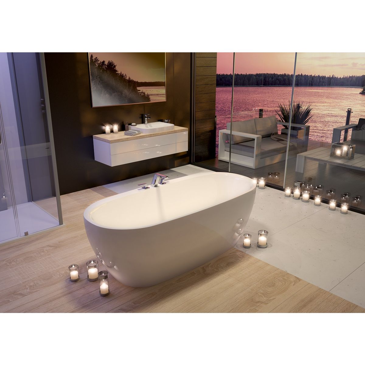 - freistehende Badewanne komplett mit weißem Schlitzüberlauf