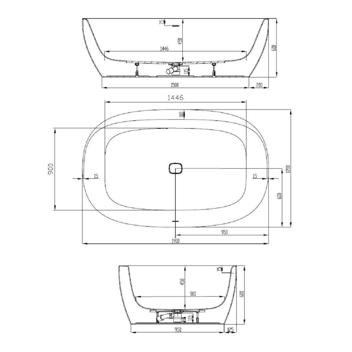- freistehende Badewanne komplett mit weißem Schlitzüberlauf