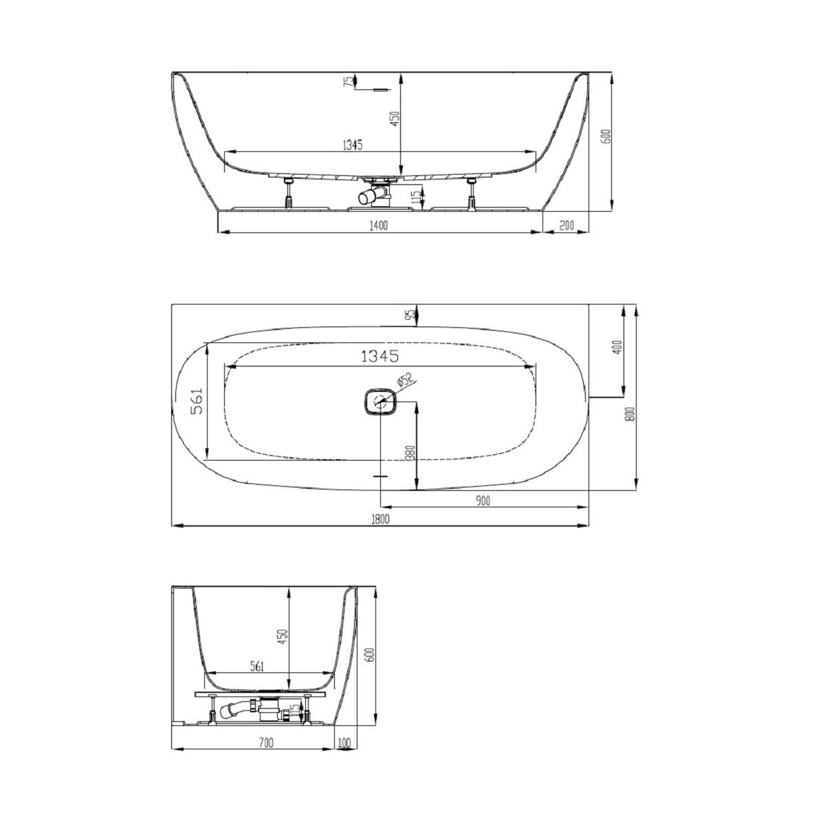 - symmetrische Wandbadewanne komplett mit Überlauf und Befüllung*