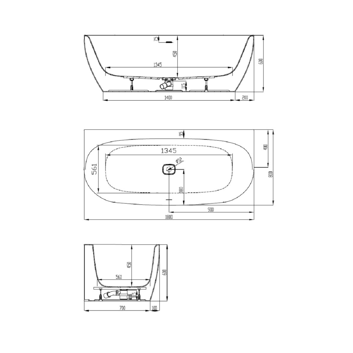 - symmetrische Wandbadewanne komplett mit weißem Schlitzüberlauf