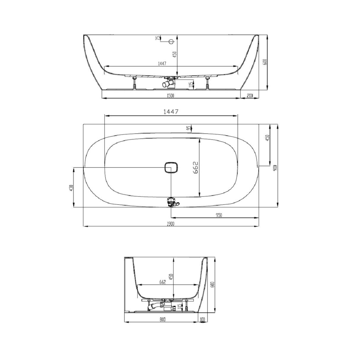 * Die komplette symmetrische Wandwanne umfasst: integriertes Überlaufsystem mit Füllfunktion, Abflusssystem mit Klick-Klack-Stopfen, Anschlussschlauch.
