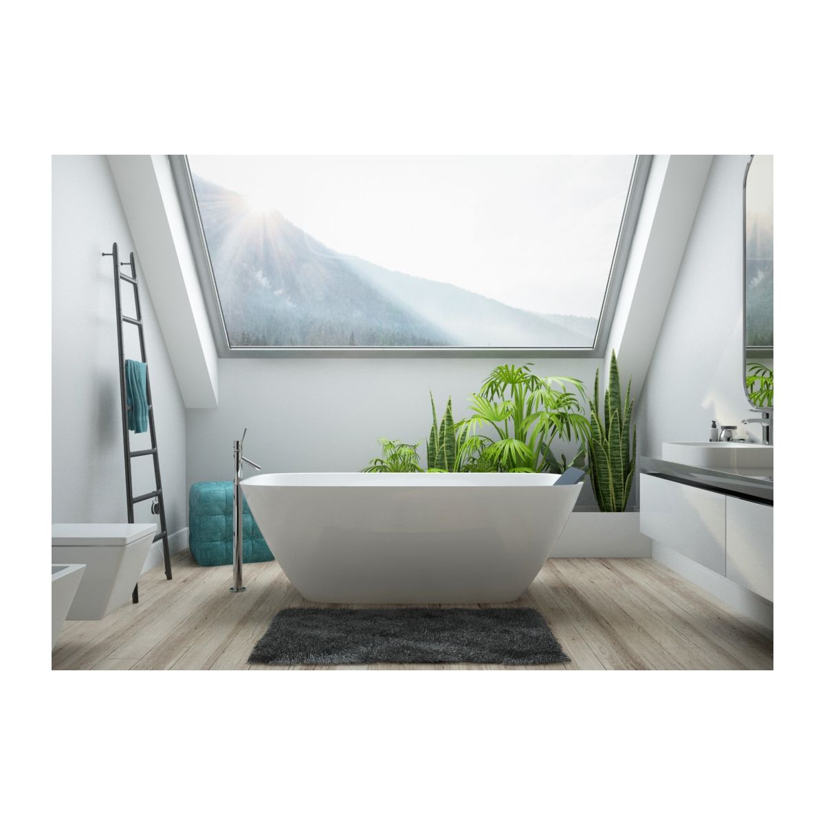 Die komplette ovale freistehende Badewanne umfasst: integriertes Überlaufsystem, Abflusssystem mit Klick-Klack-Stopfen, Verbindungsschlauch.