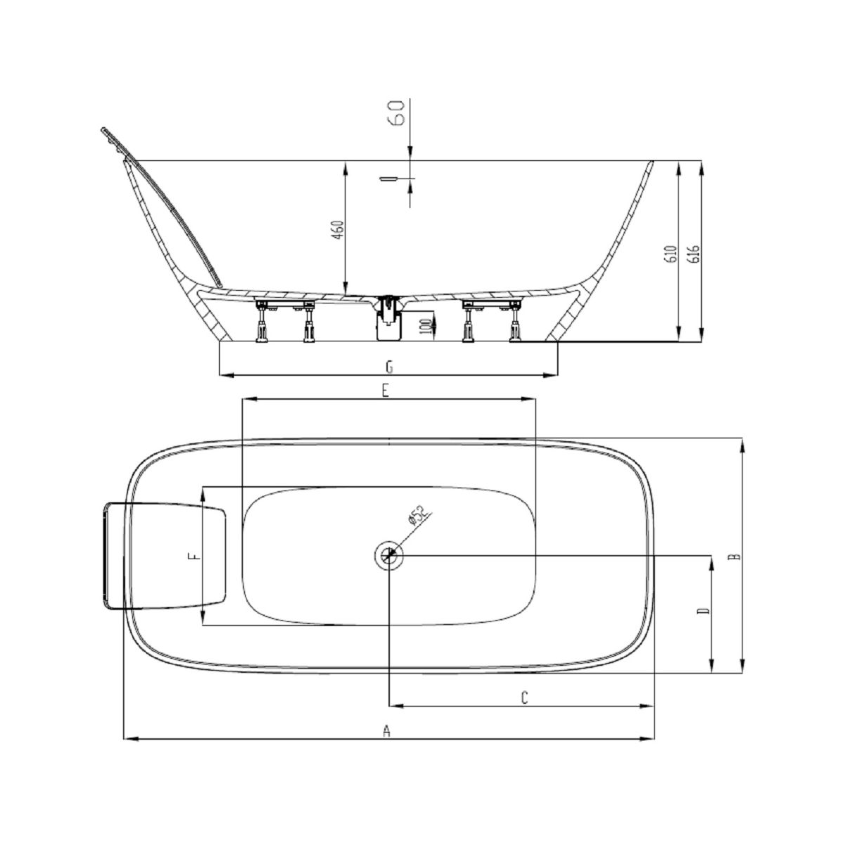 Die komplette freistehende ovale Badewanne umfasst: integriertes Überlaufsystem, Abflusssystem mit Klick-Klack-Stopfen, Verbindungsschlauch.