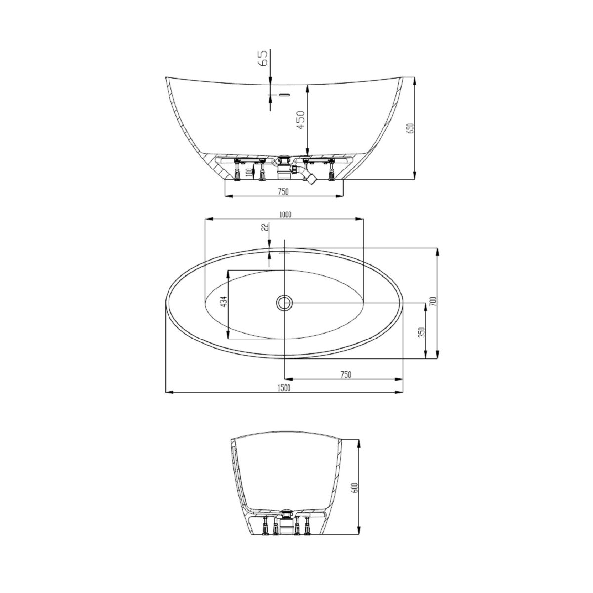 - Komplette freistehende ovale Badewanne enthält: integriertes Überlaufsystem, Abflusssystem mit Klick-Klack-Stopfen, Verbindungsschlauch
