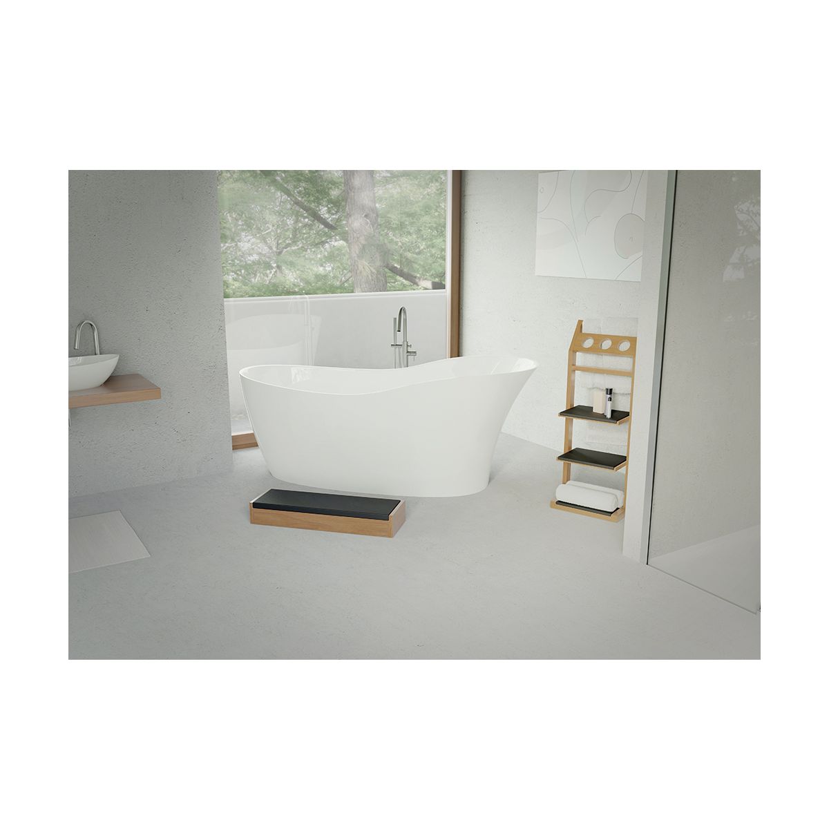 Die komplette ovale freistehende Badewanne umfasst: integriertes Überlaufsystem, Abflusssystem mit Klick-Klack-Stopfen, Verbindungsschlauch.