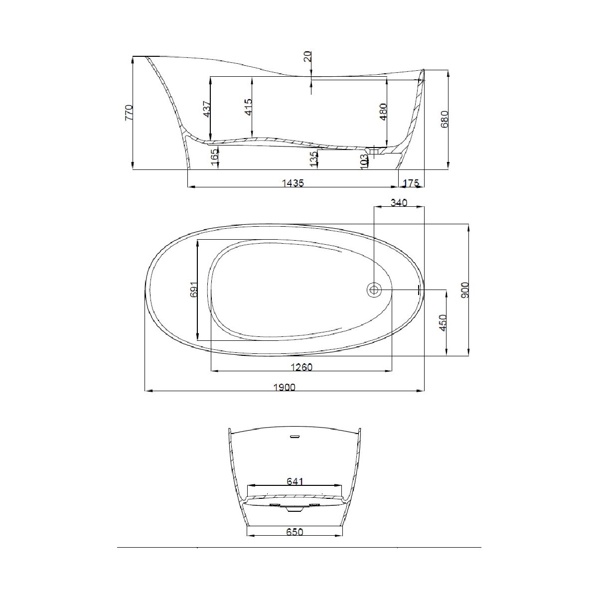 Die komplette ovale freistehende Badewanne umfasst: integriertes Überlaufsystem, Abflusssystem mit Klick-Klack-Stopfen, Anschlussschlauch.
