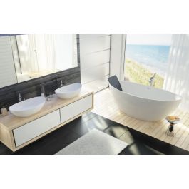 Die Schwester der Namur-Badewanne: Das Aufsatzwaschbecken knüpft auf ebenso schöne und filigrane Weise an das exklusive Design der Namur-Badewannenfamilie an. Der tiefe, ovale Waschtisch sieht unvergleichlich elegant aus und ist zudem äußerst praktisch. Da Solique auch extrem hart ist, sind die Form und Anmut des Waschtischs nahezu unvergänglich.