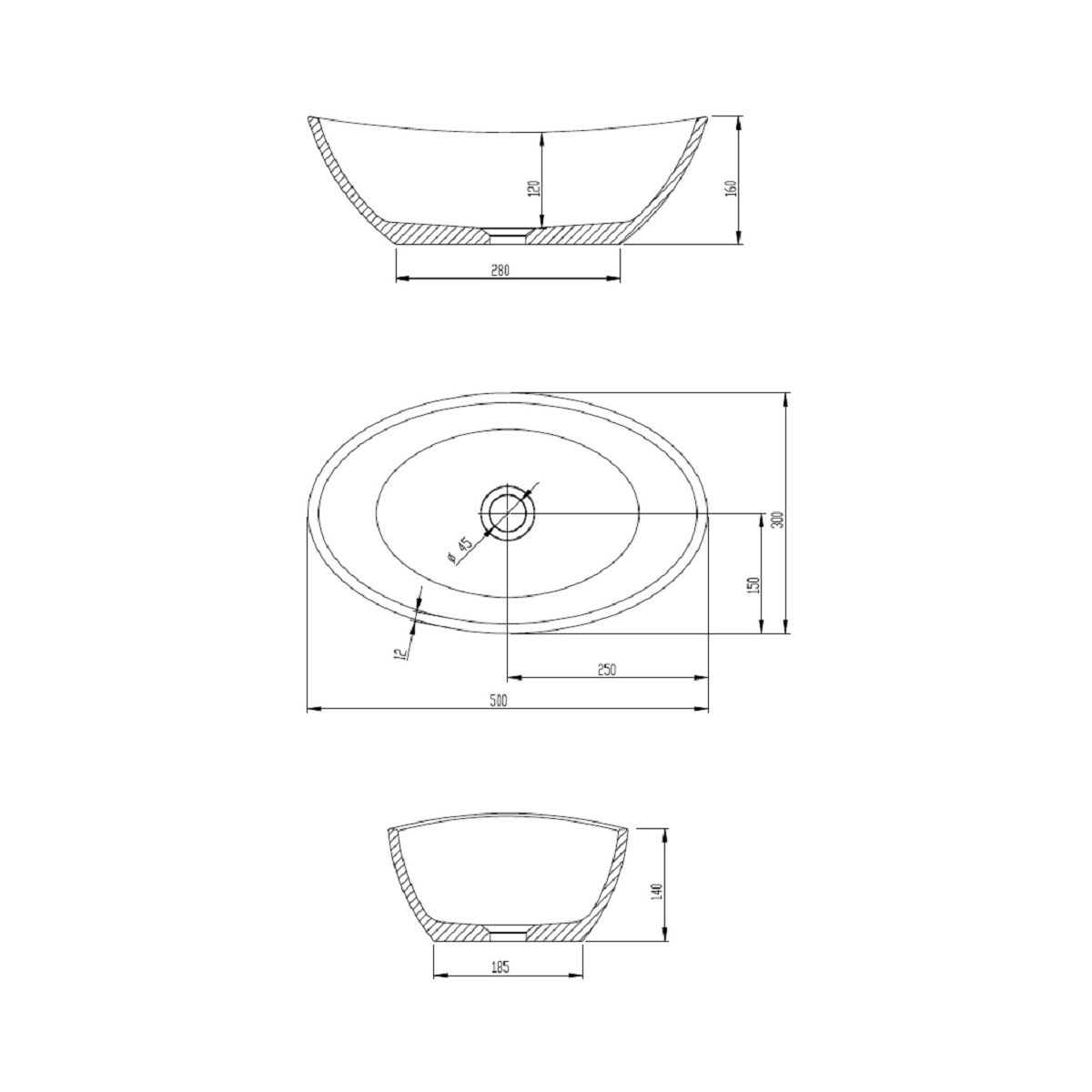 - Ovales Aufsatzwaschbecken aus Solique-Mineralguss