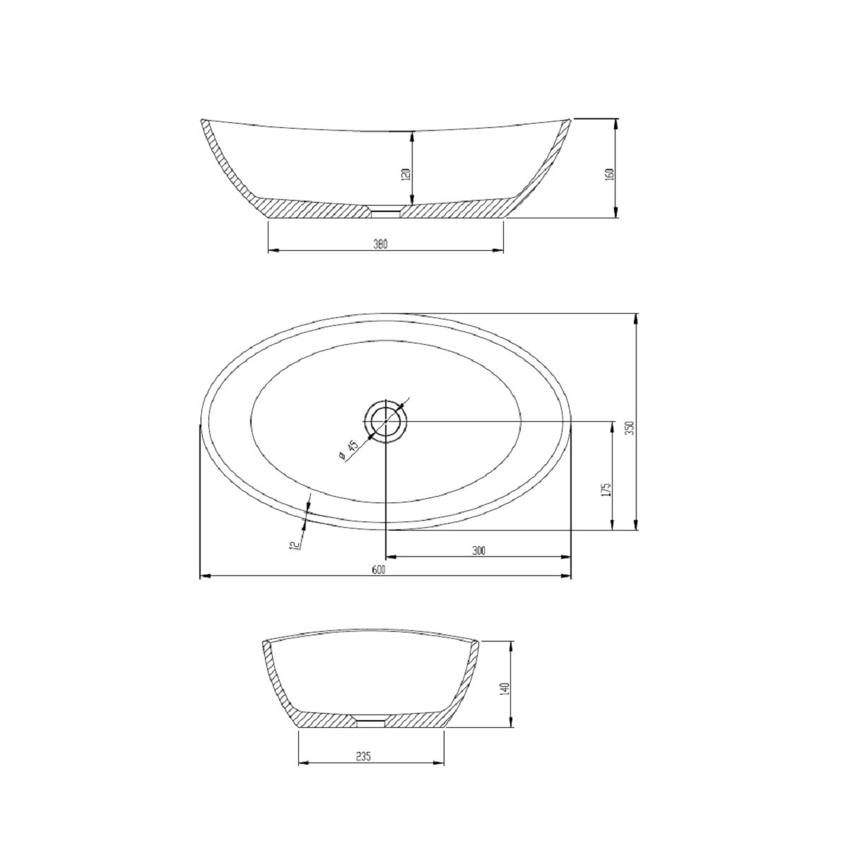 - Ovales Aufsatzwaschbecken aus Solique-Mineralguss
