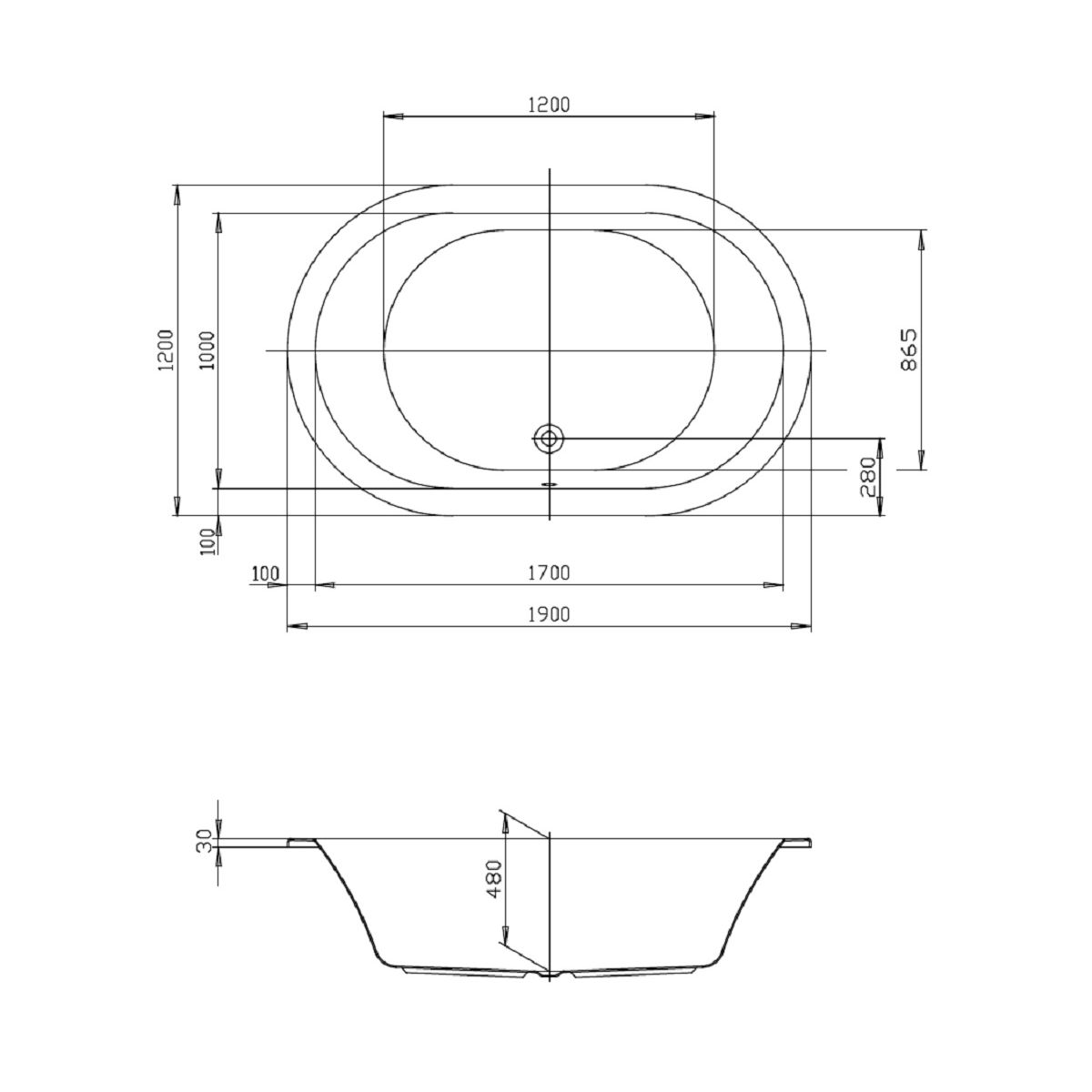 Hoesch Scelta Ovale Badewanne 190x120 cm oval weiß 3679.010