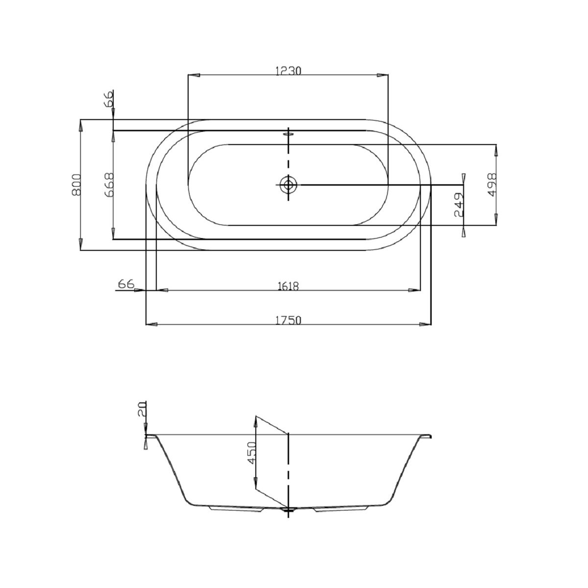 Hoesch Starck Ovale Badewanne 175x80 cm oval weiß 6135.010