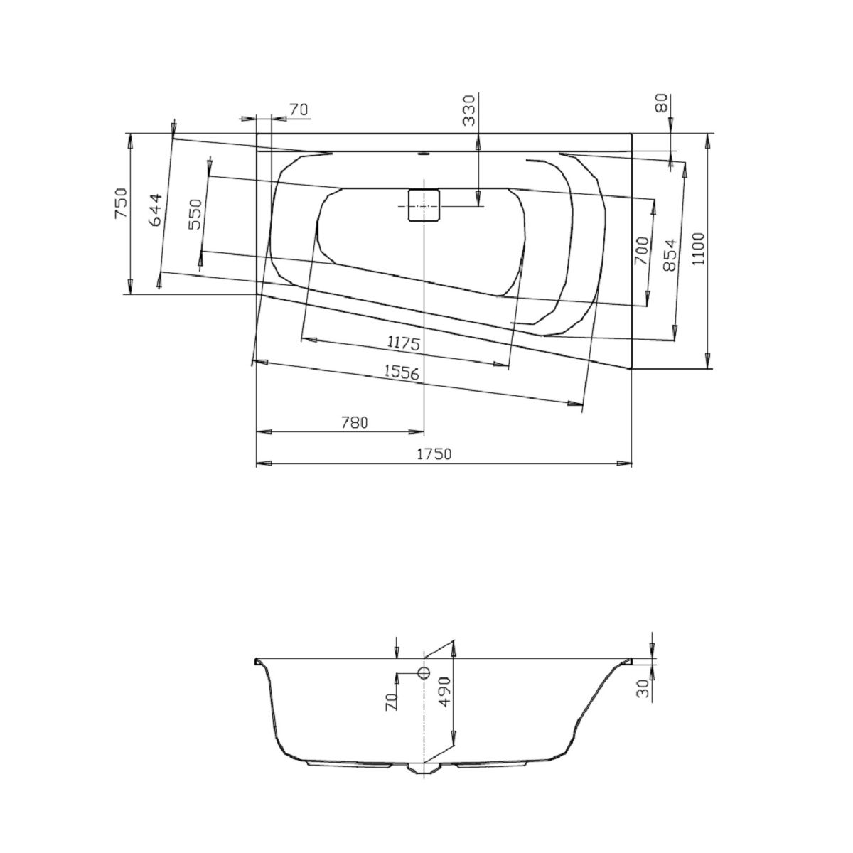 Hoesch Thasos Eckbadewanne 175x110 cm rechtsseitig weiß 3748.010